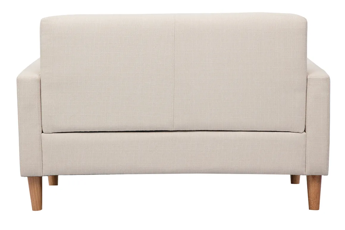 Son piètement en hévéa massif apporte un côté nature et scandinave en plus de lui conférer une stabilité et un maintien parfait. Son assise épaisse offre un bon confort et promet des soirées agréables et cocooning devant la télévision. Ses petites dimensions sont parfaites pour agrémenter un petit salon ou une chambre. Ce canapé 2 places peut être accompagné de fauteuils scandinaves assortis.