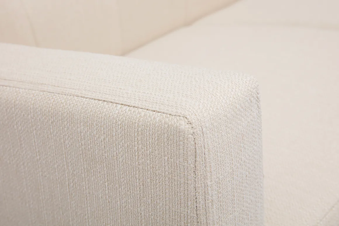 Avec son assise pour deux personnes en tissu beige, il apporte une touche chaleureuse et des teintes douces à votre intérieur. Ce canapé joue sur un subtil jeu de formes et un dossier capitonné qui convient parfaitement à un salon classique ou plus moderne.