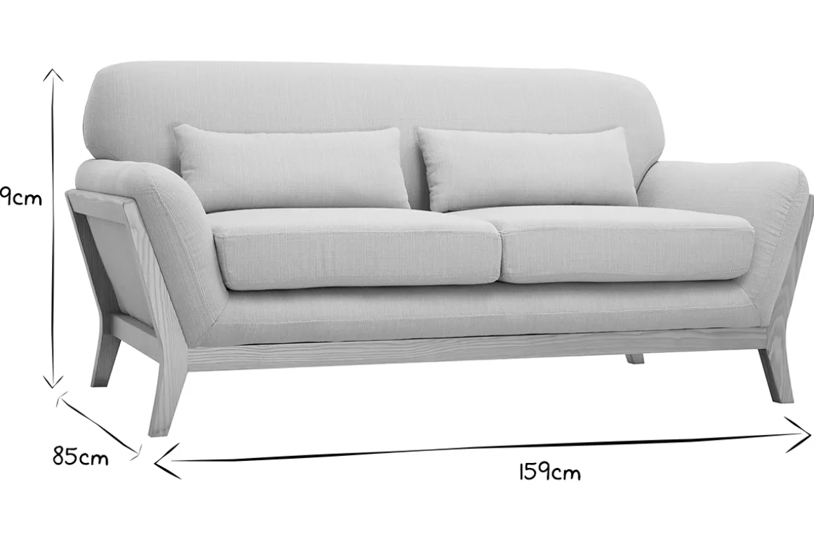 Avec ses coussins d’assise de 14 cm d’épaisseur et ses deux petits coussins d’appoint, ce canapé scandinave 2 places se veut résolument accueillant ! Ses accoudoirs légèrement inclinés sont parfaits pour les moments lecture… comme les pauses sieste ! Grâce à ses dimensions L160 x P83.5 x H78.5 cm, ce petit canapé beige 2 personnes trouvera parfaitement ses marques dans un studio ou un séjour où chaque m² compte !