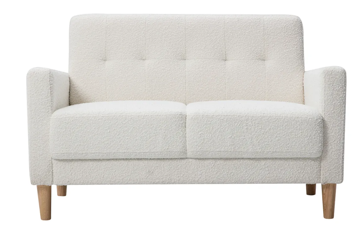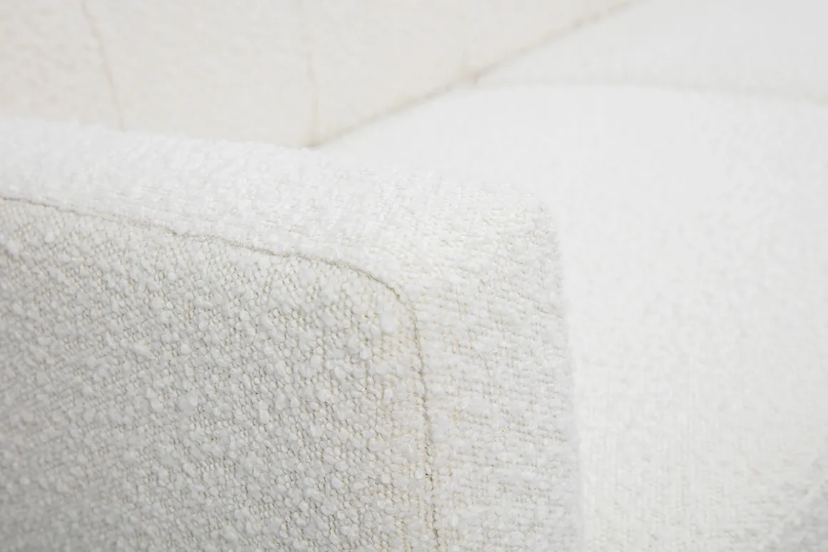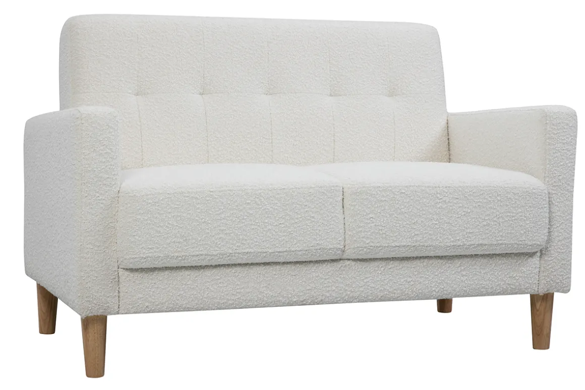 Avec son assise pour deux personnes en tissu effet laine bouclée blanc, il apporte une touche chaleureuse et des teintes douces à votre intérieur. Ce canapé joue sur un subtil jeu de formes et un dossier capitonné qui convient parfaitement à un salon classique ou plus moderne.
