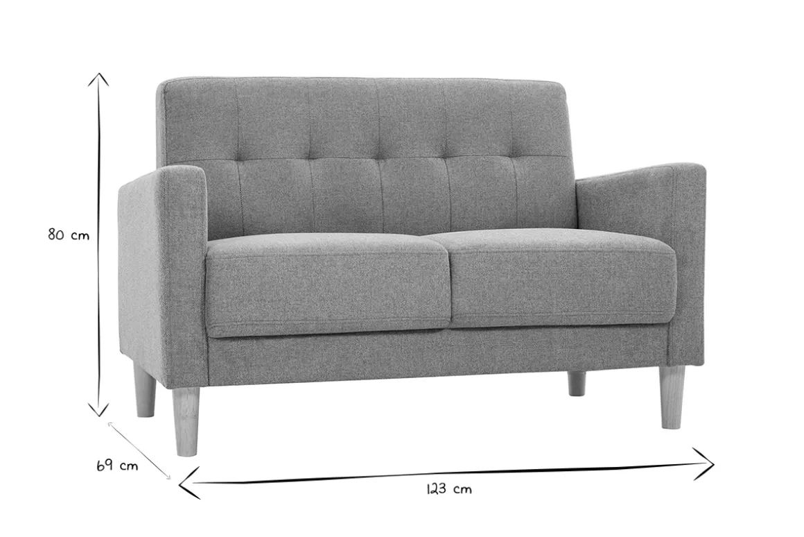 Son piètement en hévéa massif apporte un côté nature et scandinave en plus de lui conférer une stabilité et un maintien parfait. Son assise épaisse offre un bon confort et promet des soirées agréables et cocooning devant la télévision. Ses petites dimensions sont parfaites pour agrémenter un petit salon ou une chambre. Ce canapé 2 places peut être accompagné de fauteuils scandinaves assortis.