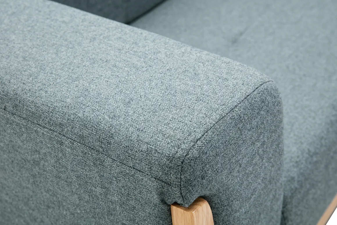 Pour contraster avec les beaux reflets blonds du bois, ce petit canapé 2 places s’habille d’un superbe tissu vert de gris à la finition capitonnée. Intense et infiniment tendance, ce revêtement apporte un aspect hyper chaleureux à FJORD.