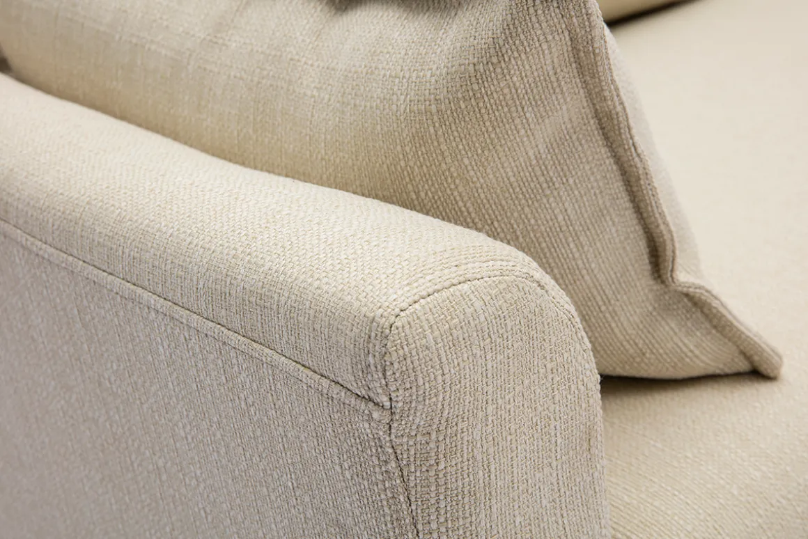 Des accoudoirs légèrement évasés à la structure travaillée tout en courbes, ce canapé rappelle l’univers des salons classiques chic. À ce design d’inspiration rétro s’ajoutent quelques éléments des canapés scandinaves. Le piètement en bois massif, la forme épurée et le coloris naturel nous transportent dans les intérieurs nordiques. On aime ce mariage entre ligne classique et design scandinave qui fait tout le charme du canapé KATE. C’est une assise indémodable adaptée à de nombreux styles déco.