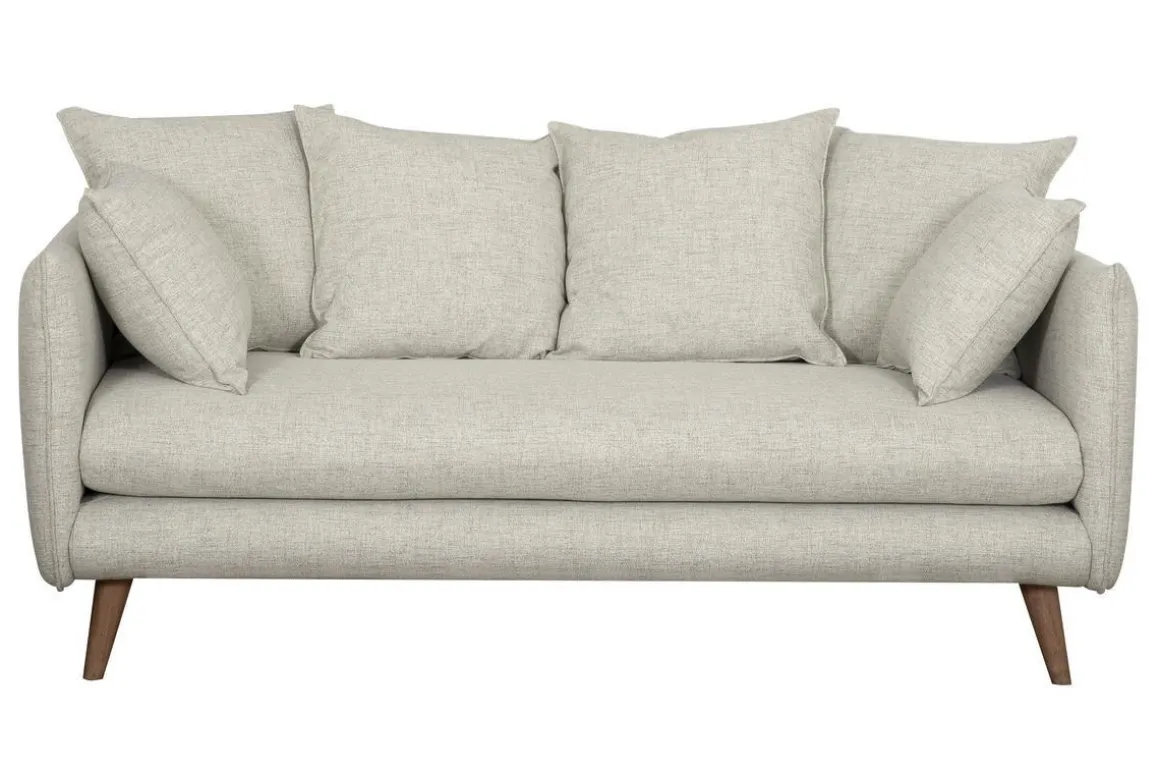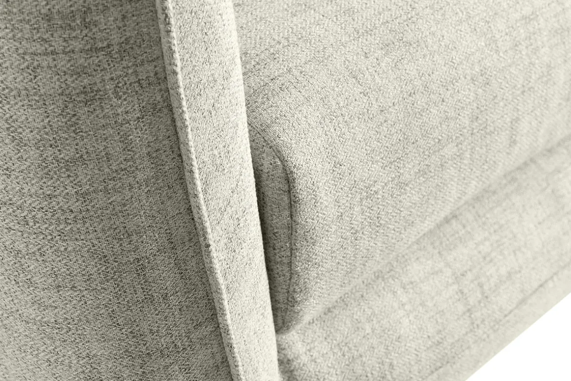 Ce canapé 100% made in France conjugue notre exigence de qualité avec notre souci du détail. On aime l’équilibre des volumes, la justesse des proportions. Il a été pensé autour de la notion de confort avec une double assise rembourrée (densité de la mousse polyether 28kg/m3) et quatre grands coussins de dossier enveloppants. On aime aussi la douceur de son tissu beige (100% polyester) avec son élégant jeu de surpiqures ainsi que la délicatesse de ses quatre pieds en hêtre massif.