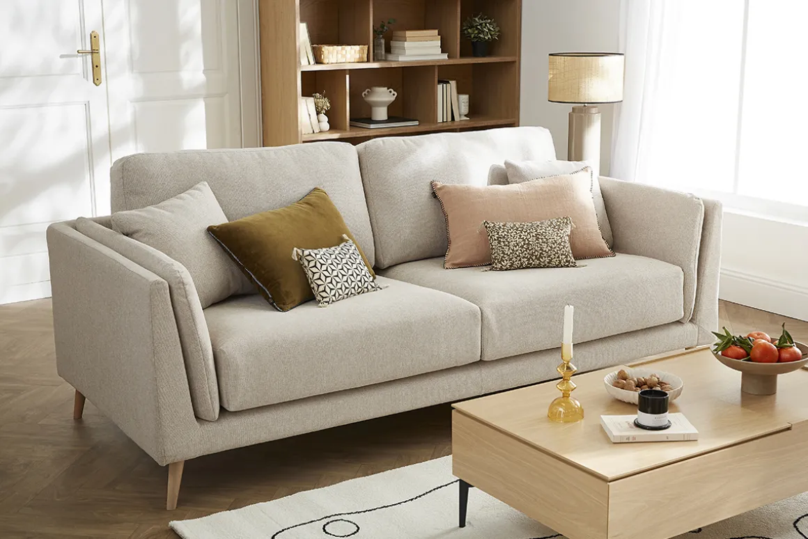 Accompagné d’un joli tapis et d’une table basse design, ce canapé 3 places beige naturel vous aidera à composer une pièce à vivre harmonieuse.