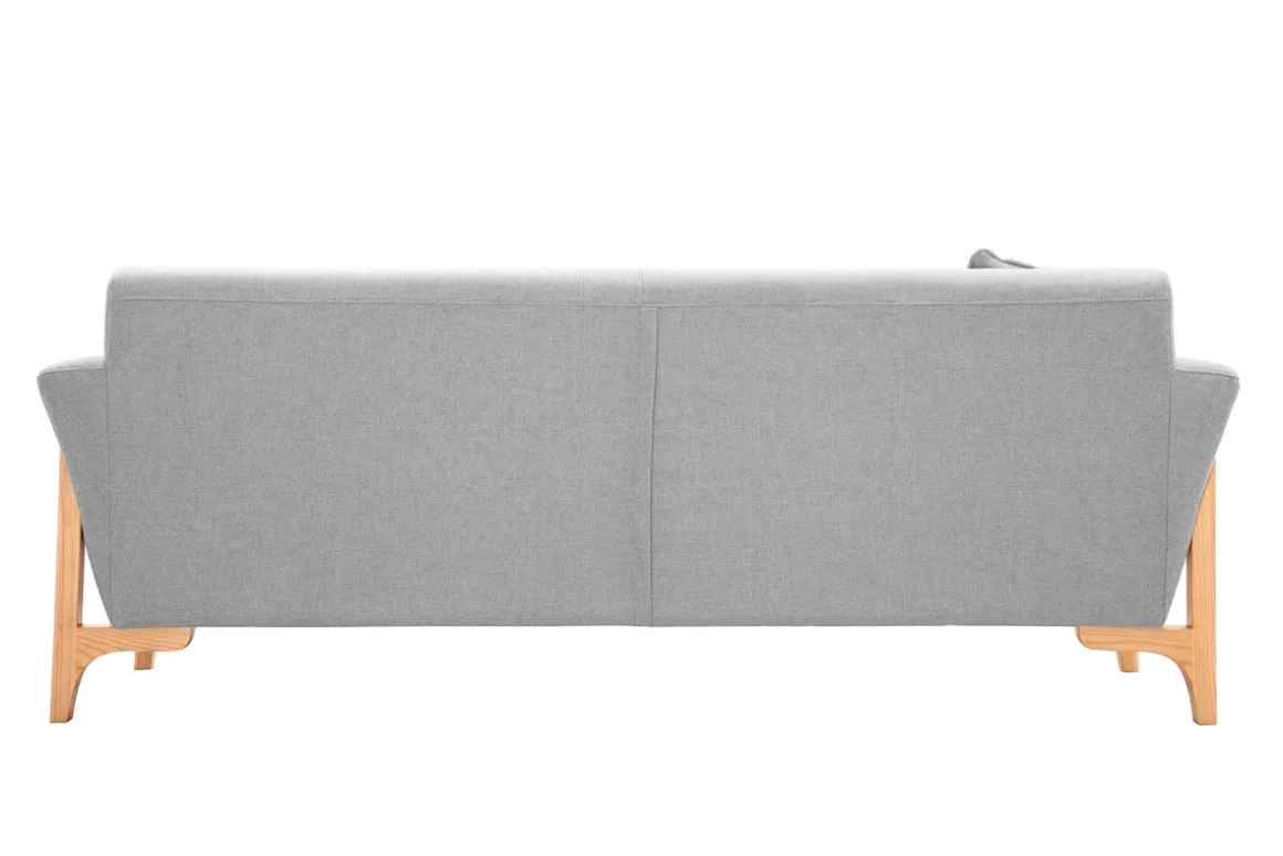 Ce canapé 3 places (L186 cm) affiche une esthétique scandinave résolument tendance. Il se distingue par sa structure en bois aérienne et épurée qui épouse parfaitement l’assise. Ce cadre en frêne massif souligne la beauté de ses lignes pures et se marie parfaitement au revêtement en tissu effet velours texturé gris clair (95% polyester).
