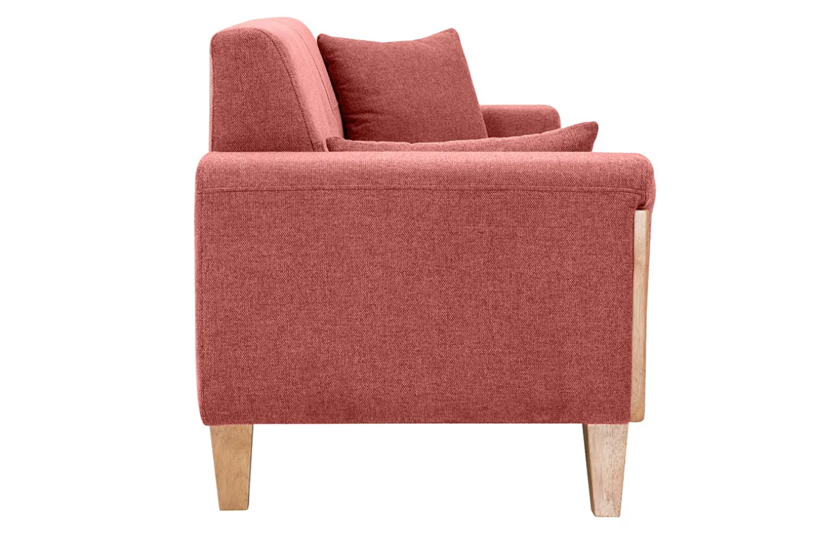 Son design et son confort font de ce canapé terracotta une assise de salon idéale ! Avec ses coutures et ses capitons qui allouent un charme sans pareil, et une structure en hévéa massif originale qui habille soubassement et accoudoirs, ce canapé scandinave en tissu et bois offre un rendu unique !