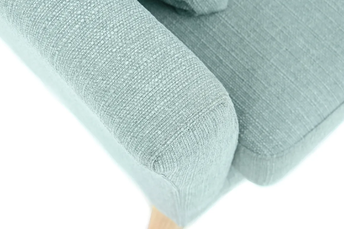 Le design de ce canapé nordique a été travaillé tout en sobriété. C’est en s’attardant sur les détails que l’on découvre tout ce qui fait le charme de cette assise : une jolie symétrie entre les pieds en chêne évasés et les accoudoirs très légèrement incurvés un mariage unique entre la chaleur du bois et la fraîcheur du coloris mint. Le minimalisme de sa forme, inspirée du design scandinave, en fait une assise indémodable et facile à intégrer dans un salon mêlant mobilier nordique et pièces contemporaines.