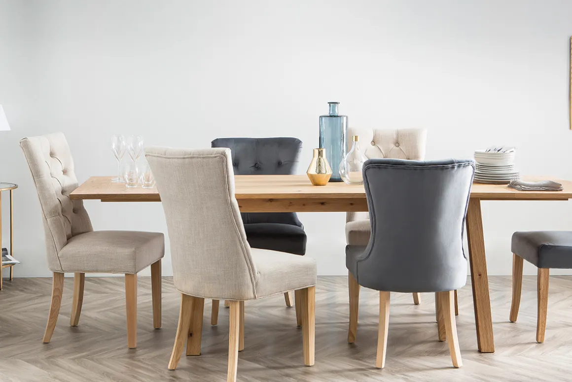 Sans artifice, elle possède beaucoup d’élégance grâce à un grand dossier capitonné et des pieds en bois massif. Très agréable au toucher, son revêtement en tissu 100% lin coloris beige naturel apportera une touche d’épure à votre pièce de vie. Son dossier épouse parfaitement les courbes de votre dos pour un bon maintien. Ses pieds, à l’arrière, sont inclinés et arrondis pour donner une touche unique à ces chaises.