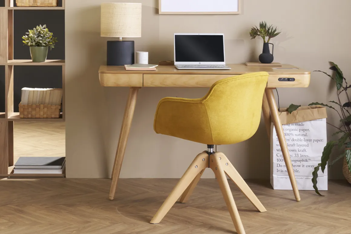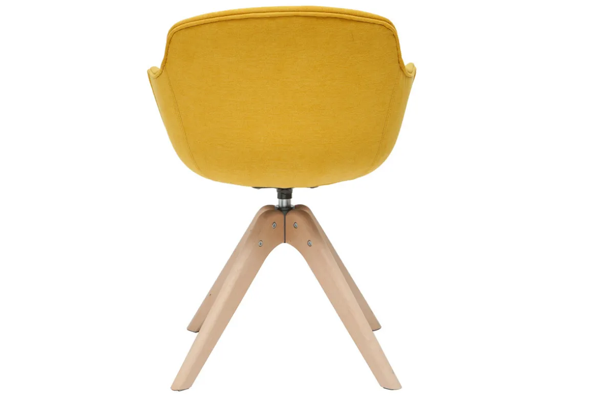 C’est la douceur des lignes de la chaise AARON qui interpelle en premier. Une assise tout en courbes, un piètement en arrondis… Cette chaise jaune moutarde a été travaillée tout en finesse. Le revêtement de cette chaise en tissu effet velours ajoute cette petite touche chic et cosy qu’on aime tant voir dans nos intérieurs. Quatre pieds en bois massif complètent le tout : le hêtre a été choisi pour sa teinte claire et chaleureuse qui met en valeur l’ensemble.