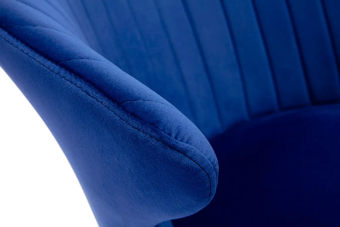 Chaise design en tissu velours bleu foncé et métal noir livrée prête à monter.