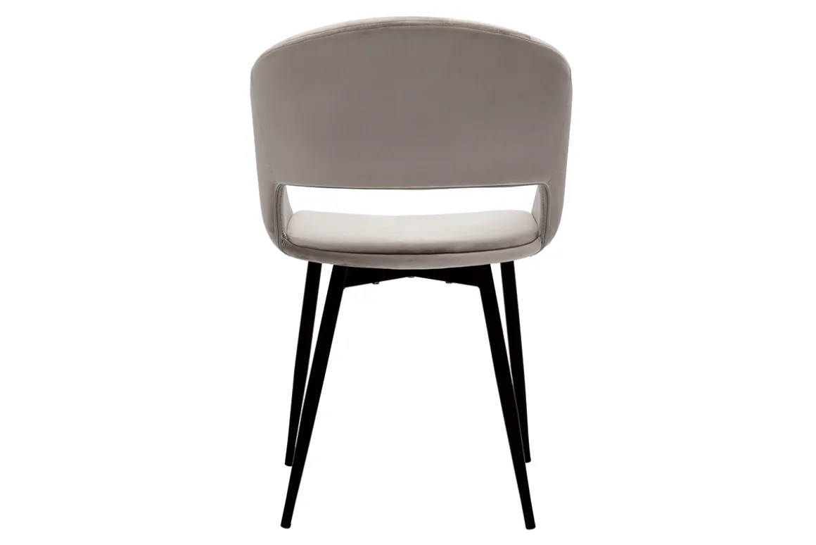 Cette chaise maîtrise avec justesse courbes vintage et design tendance. Le siège tout en rondeur s’habille d’un velours taupe, une matière douce et chaleureuse plébiscitée des intérieurs raffinés et cosy. Un clin d’oeil glamour modernisé par le piètement fuselé noir et l’originalité du dossier ajouré. On imagine parfaitement son look soigné dans une cuisine ou salle à la manger à la déco rétro chic.