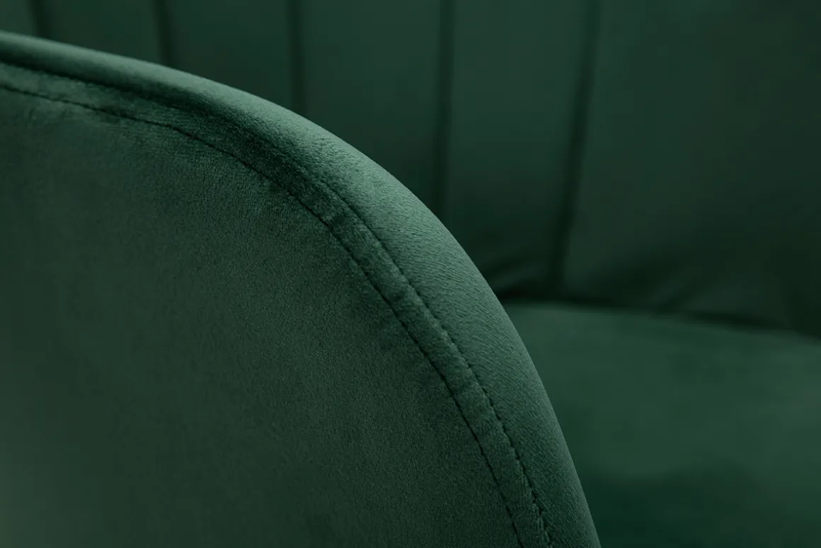 Élégante et raffinée, elle marie avec aisance son assise en velours vert à des pieds fuselés en métal noir. Ce piètement aérien vient parfaire son look et signe son style ultra contemporain.