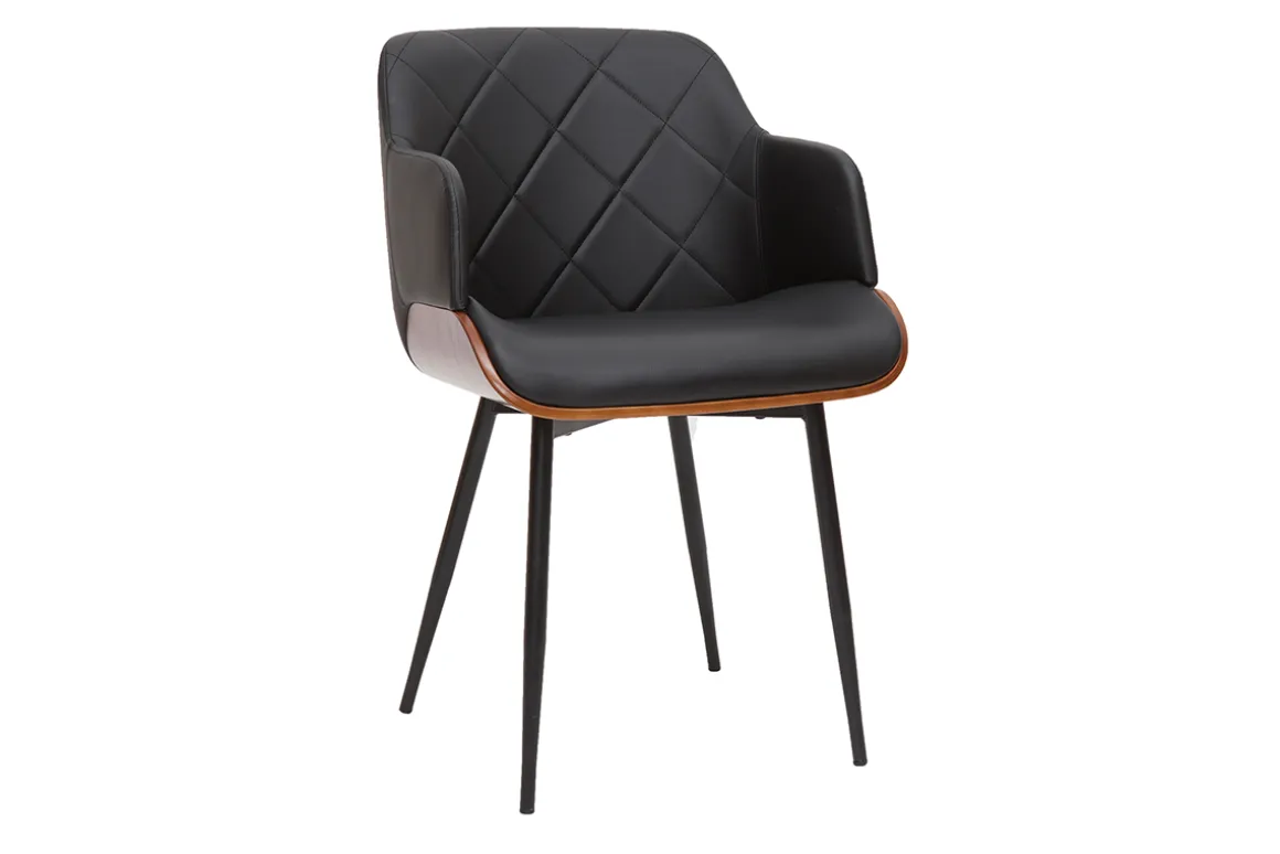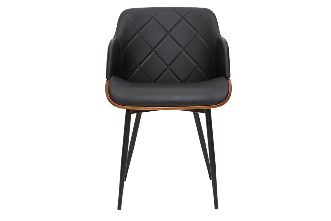 Tout vous séduira dans cette chaise tendance. L’association du polyuréthane noir matelassé, du bois foncé et du métal lui donne résolument un design dans l’air du temps. Elle marie brillament des pieds fuselés à un siège enveloppant qui vous apportera tout le confort nécessaire lors de vos repas prolongés .