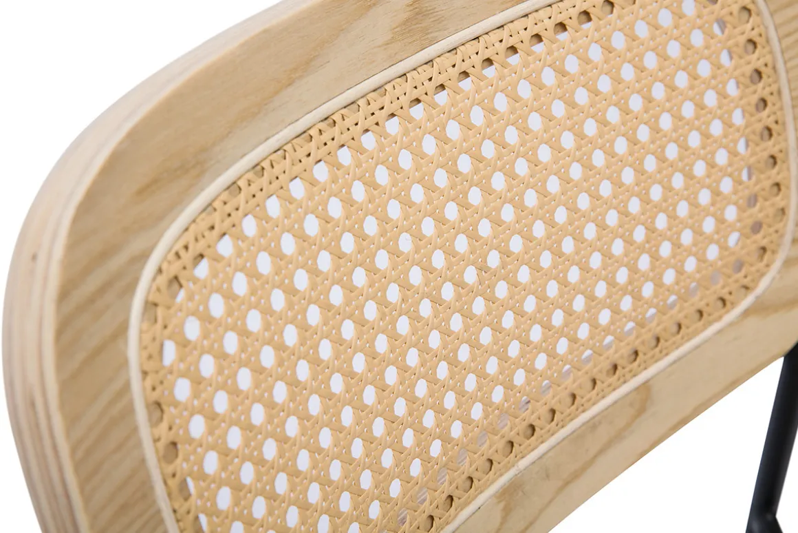 Miliboo Chaise Design-Chaises design en tissu effet velours texturé beige, métal noir et cannage rotin (lot de 2) MIRANDA