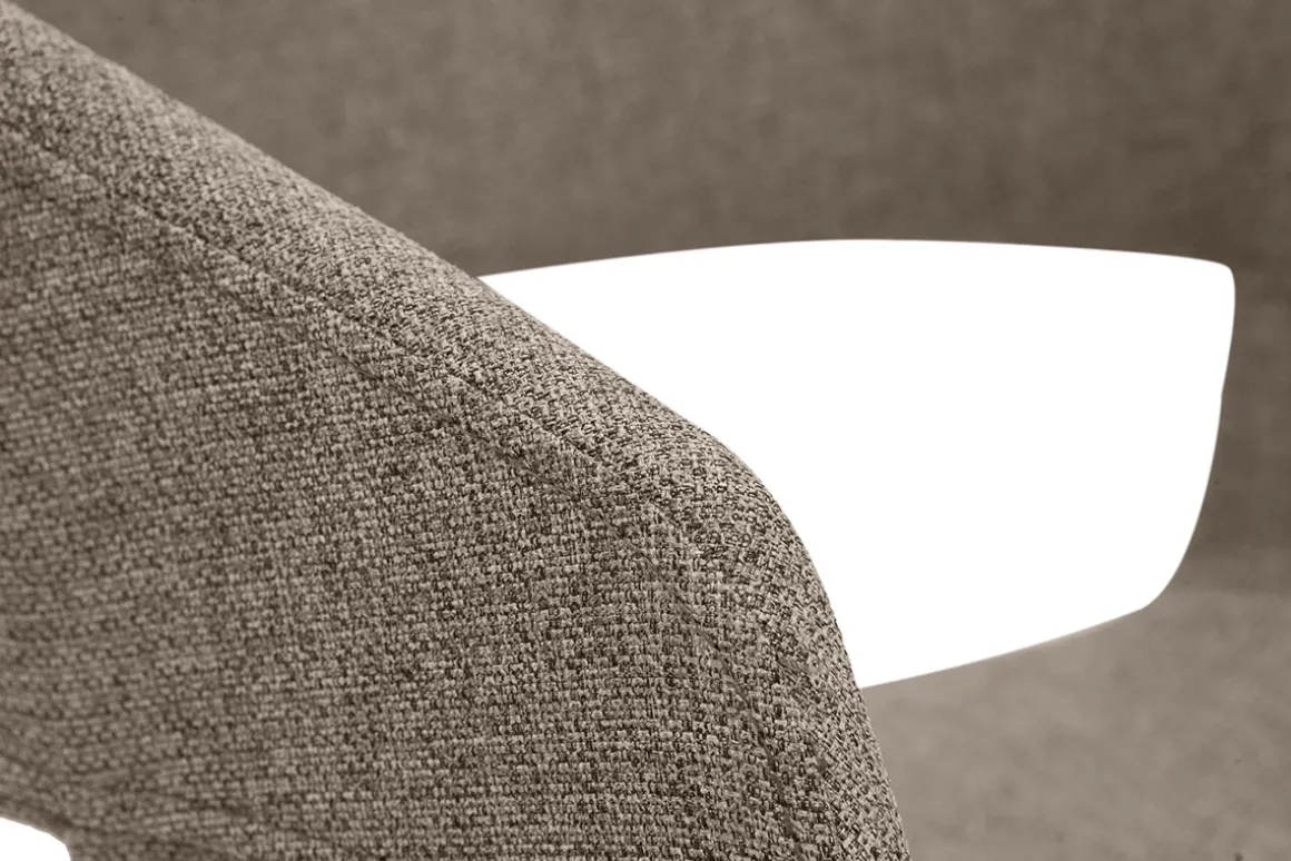 Des formes généreuses qui mêlent équilibre et légèreté pour des repas conviviaux tout confort ! Rembourrés d’une mousse moelleuse (densité 25 kg/m3) pour un agréable maintien, les larges assises accueillantes et hauts dossiers galbés unissent leurs courbes jusqu’aux accoudoirs enveloppants. L’ensemble s’habille d’un revêtement en tissu (97% polyester et 3% nylon), une matière résistante et agréable au toucher. Enfin, les 4 solides pieds placage chêne garantissent robustesse et grande stabilité.