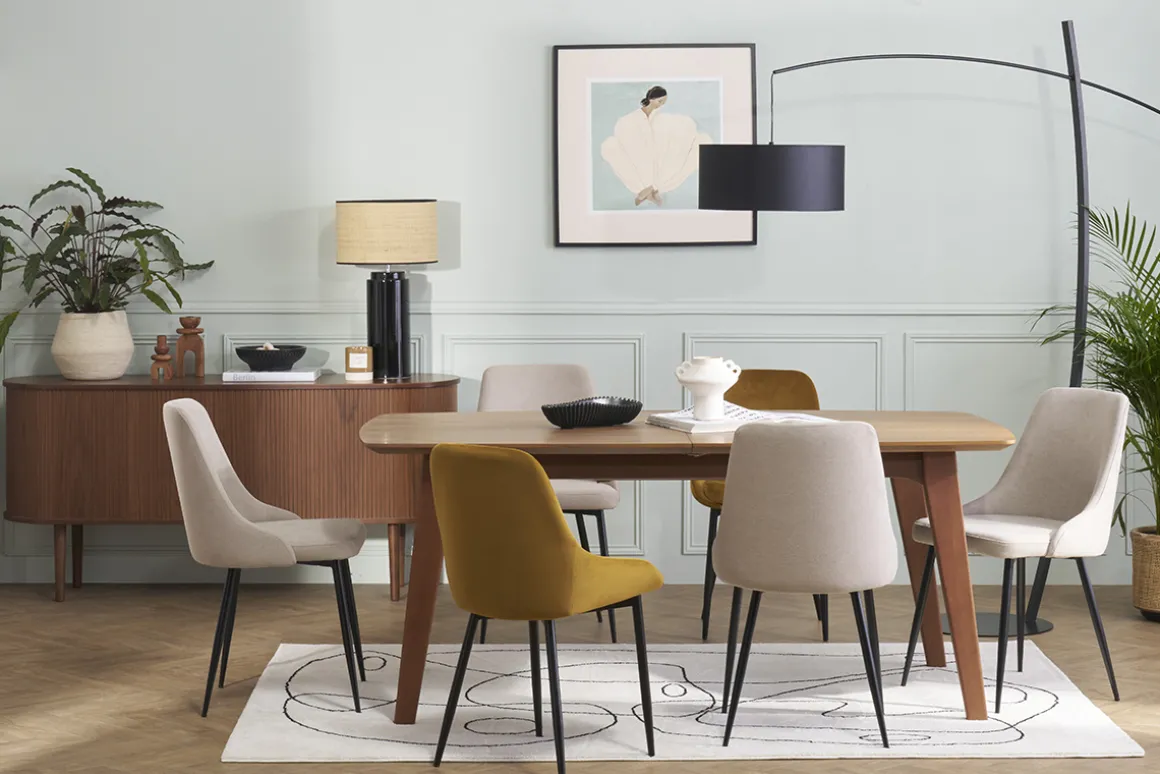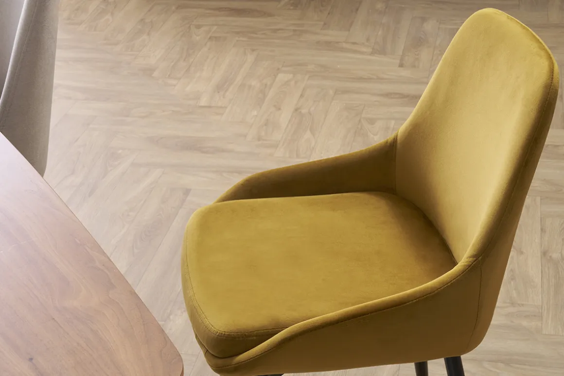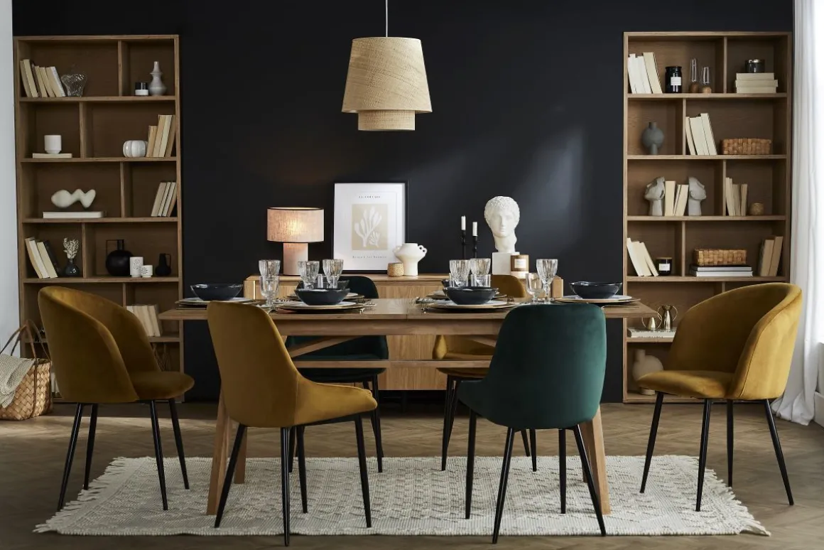 Les chaises HOLO associent l’élégance du velours à une forme englobante pour une salle à manger chic et cosy !