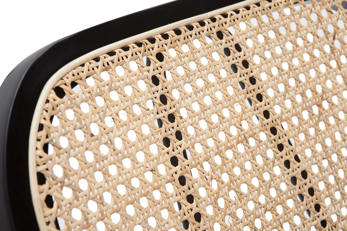 Ce modèle de chaise design embrasse le passé avec son dossier en cannage de rotin et le futur avec son piètement effilé en métal noir. Des matières qui résisteront sans sourciller au passage du temps ! Revival vintage – qui n’a rien perdu de sa superbe – le cannage se réinvente pour perdurer avec modernité. Cette fibre naturelle entrelacée qui apporte une touche aérienne, séduit par son caractère authentique et dessinera au sol de jolis jeux d’ombres et lumières.