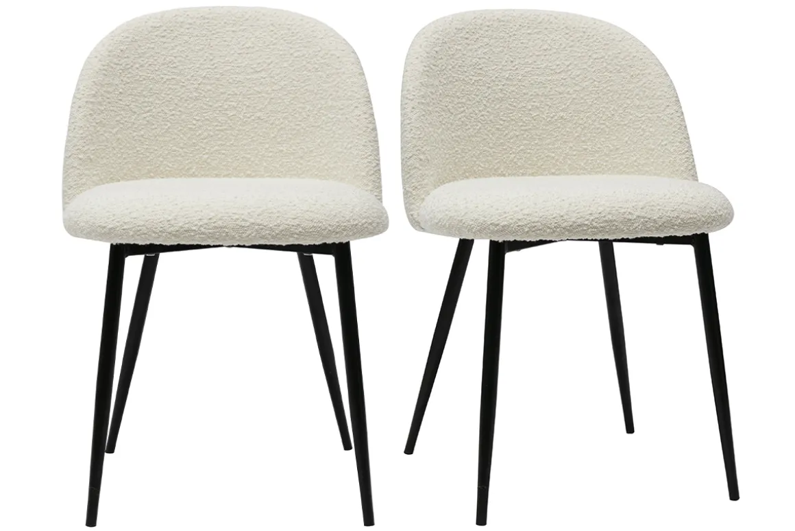 Tissu effet laine bouclée écru, pieds en métal noir, lignes arrondies : les chaises CELESTE sont des assises au look aussi cosy que trendy !