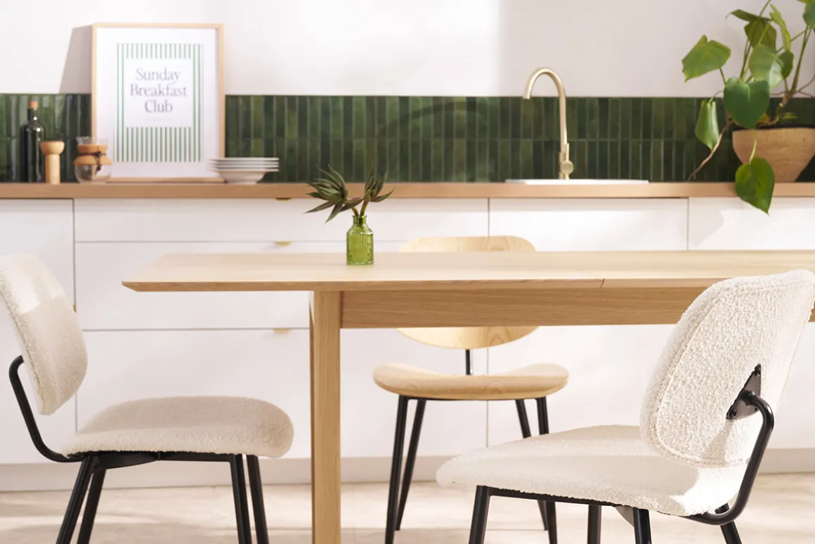 Les chaises en effet laine bouclée TOBIAS sont l’ingrédient secret des salles à manger à la beauté intemporelle.