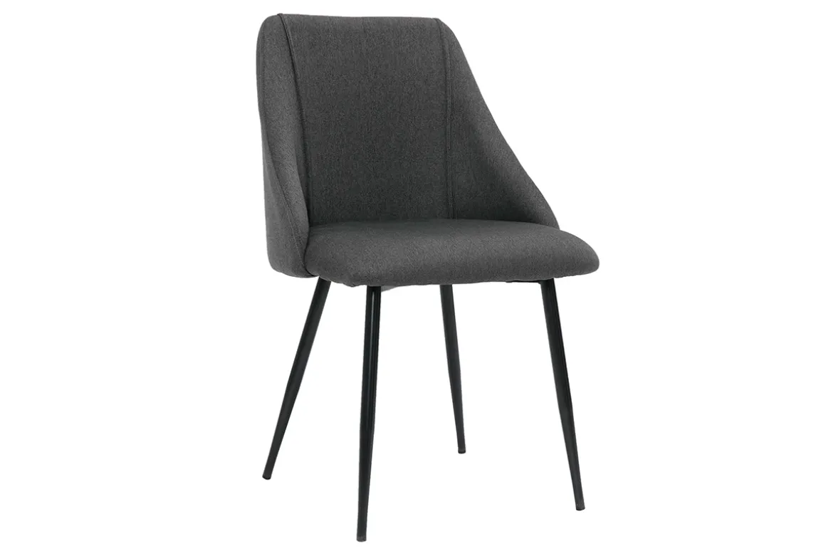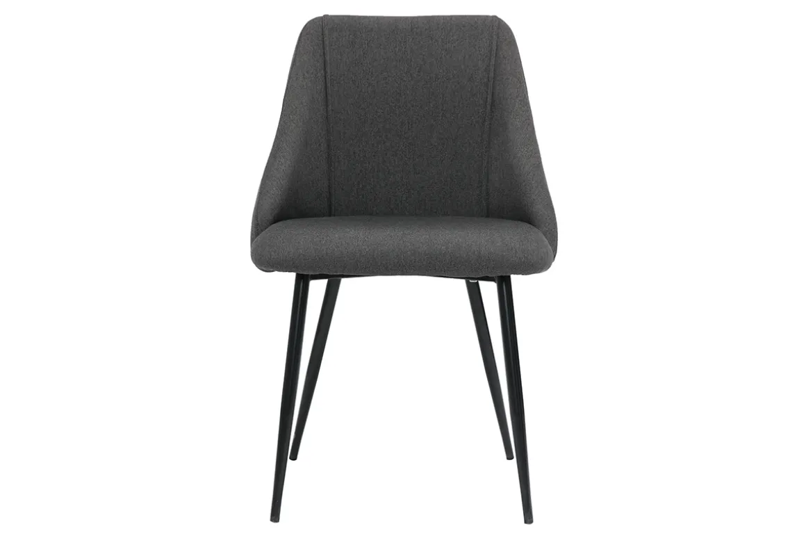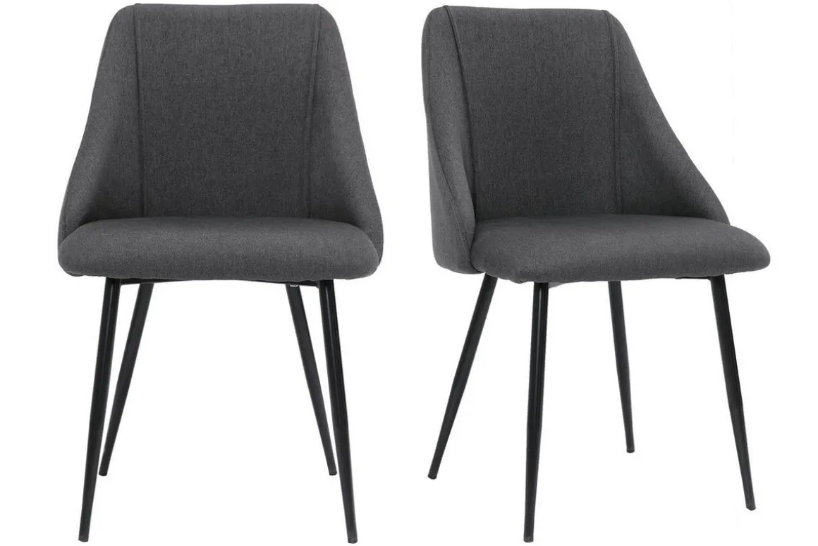 Chaises en tissu gris foncé et métal noir HIGGINS vendues par lot de 2. Livrées prêtes à assembler. Montage simple, seuls les pieds sont à fixer.