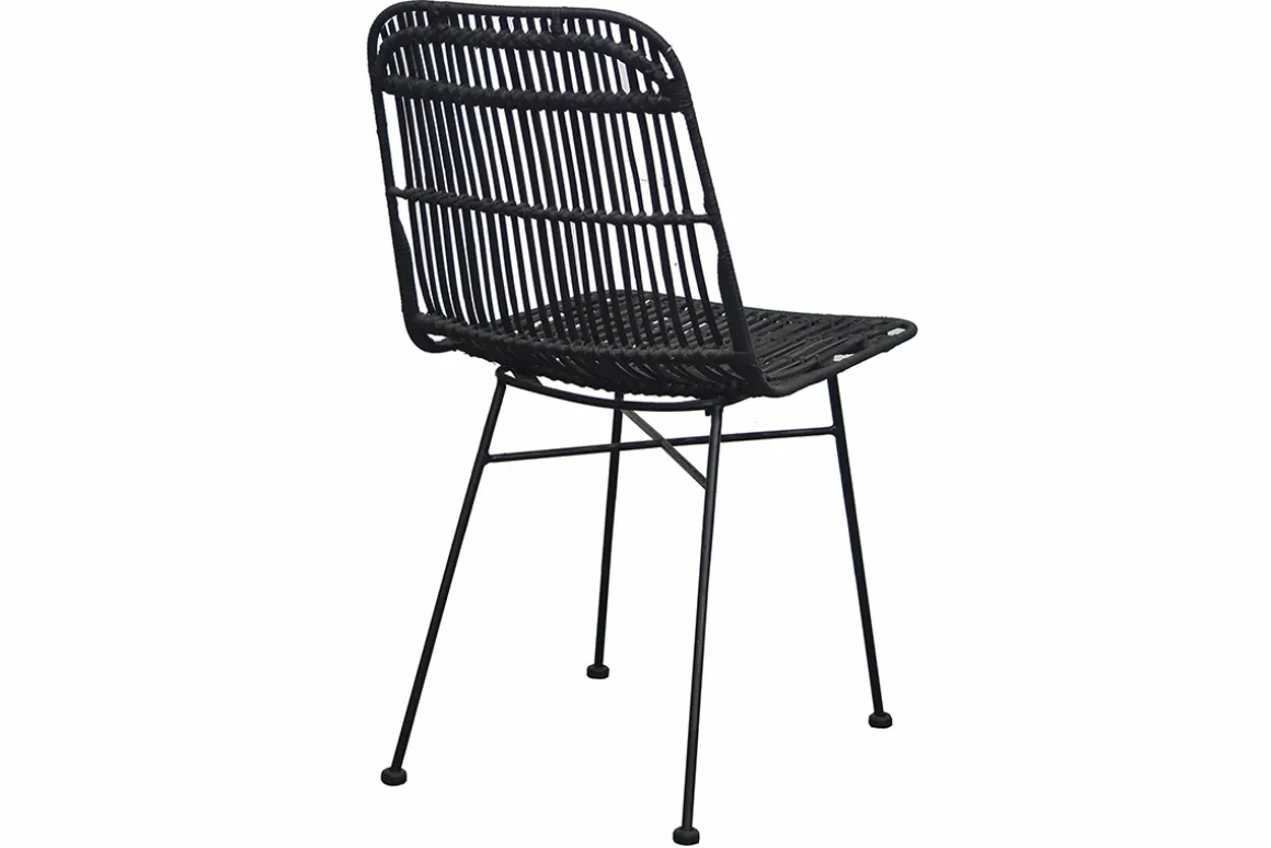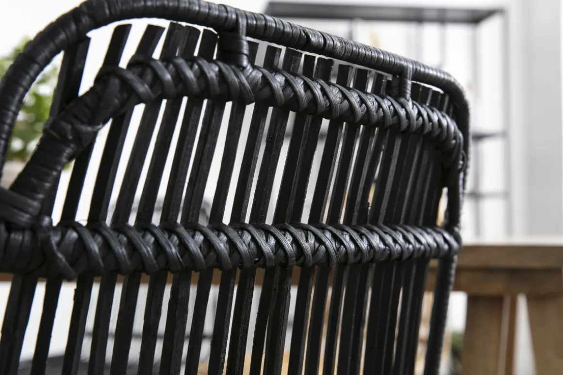 Ces chaises en rotin noir sont des assises de caractère réalisées artisanalement. Leurs lignes épurées en font des pièces d’une grande légèreté visuelle qui s’adaptent à tous les intérieurs. La tendance est au rotin ! Une matière qui s’intègre très facilement aux différentes pièces de la maison et apporte un style exotique qu’on adore. Avec leur authentique structure en rotin peinte en noir et leurs jolies courbes, ces chaises noires sont idéales pour apporter élégance et charme à l’espace repas. Que votre intérieur soit vintage ou bohème, ces chaises en rotin et métal noir trouveront toujours leur place !