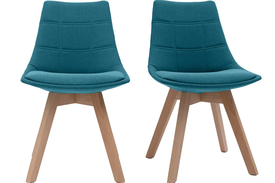 Si le piètement en hêtre massif assure stabilité et robustesse, le revêtement en tissu effet velours bleu canard (100% polyester) séduit quant à lui par son toucher réconfortant et très agréable. Rembourrées d’une agréable mousse densité 24 kg/m³, ces chaises de salle à manger seront parfaites pour profiter d’un excellent repas, confortablement installé !