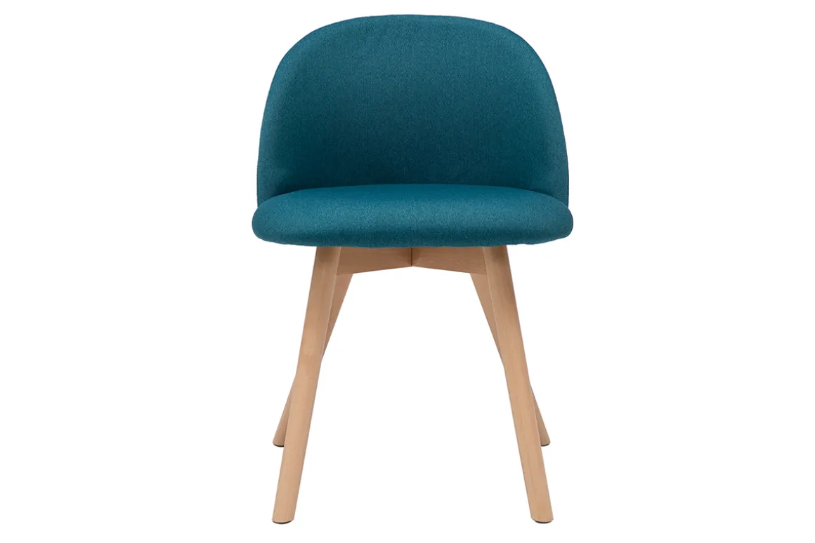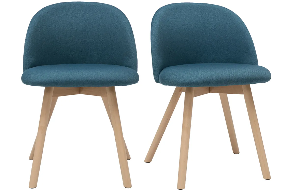 Tissu bleu canard, pieds en hêtre massif, lignes arrondies : les chaises CELESTE reflètent tout ce qui fait le charme du style scandinave.