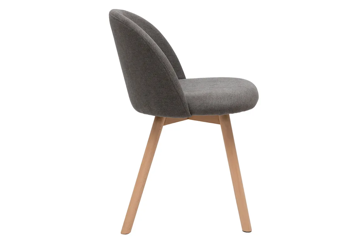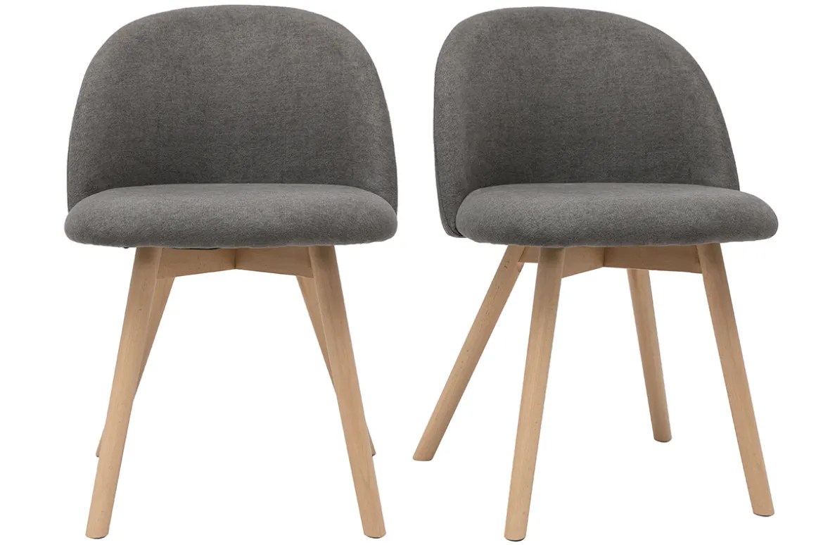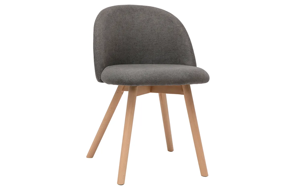 Tissu effet velours gris, pieds en hêtre massif, lignes arrondies : les chaises CELESTE reflètent tout ce qui fait le charme du style scandinave.