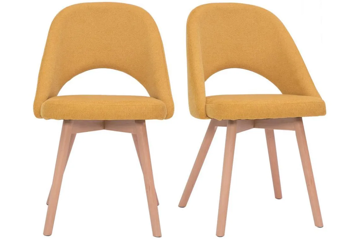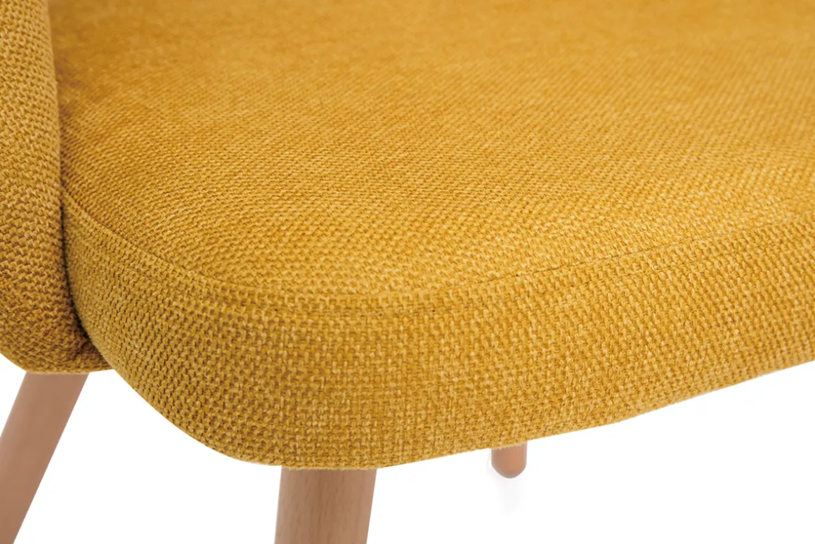 Ce modèle de chaises scandinaves sont habillées d’un joli tissu effet velours texturé de couleur jaune moutarde (100% polyester) qui répond parfaitement au piètement en hêtre massif. Associées à du meubles en bois clair, les chaises COSETTE donneront le ton d’une atmosphère douce et chaleureuse.