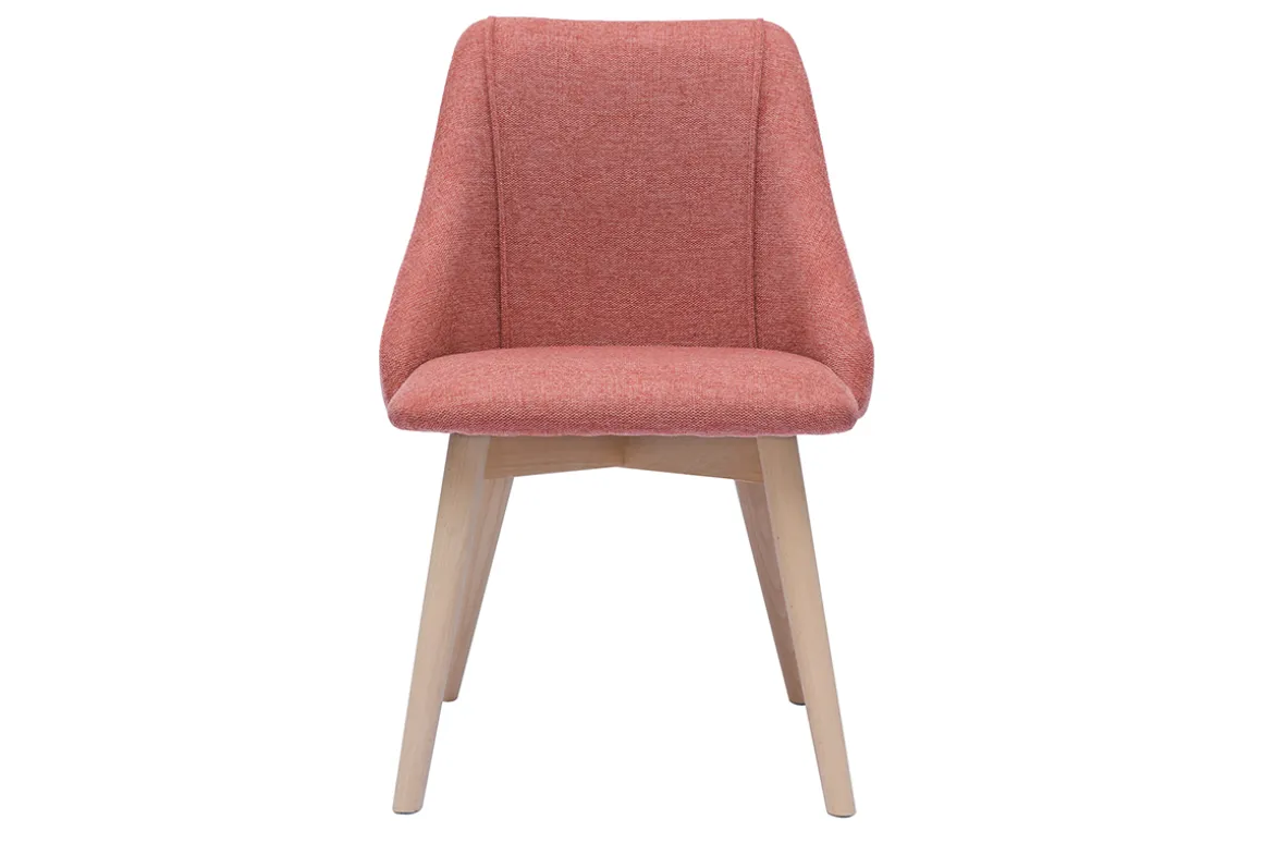 Chaises scandinaves en tissu effet velours texturé terracotta et bois clair HIGGINS vendues par lot de 2. Livrées prêtes à assembler. Montage simple, seuls les pieds sont à fixer.
