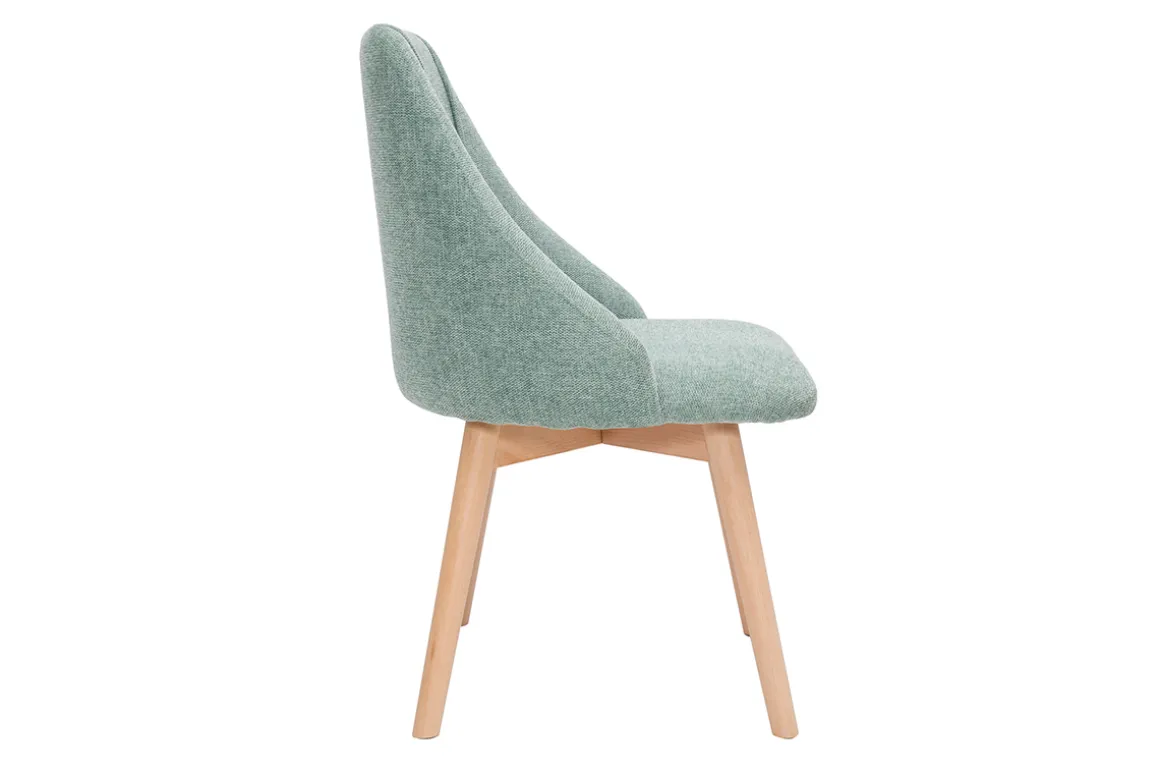 Chaises scandinaves en tissu effet velours texturé céladon et bois clair HIGGINS vendues par lot de 2. Livrées prêtes à assembler. Montage simple, seuls les pieds sont à fixer.
