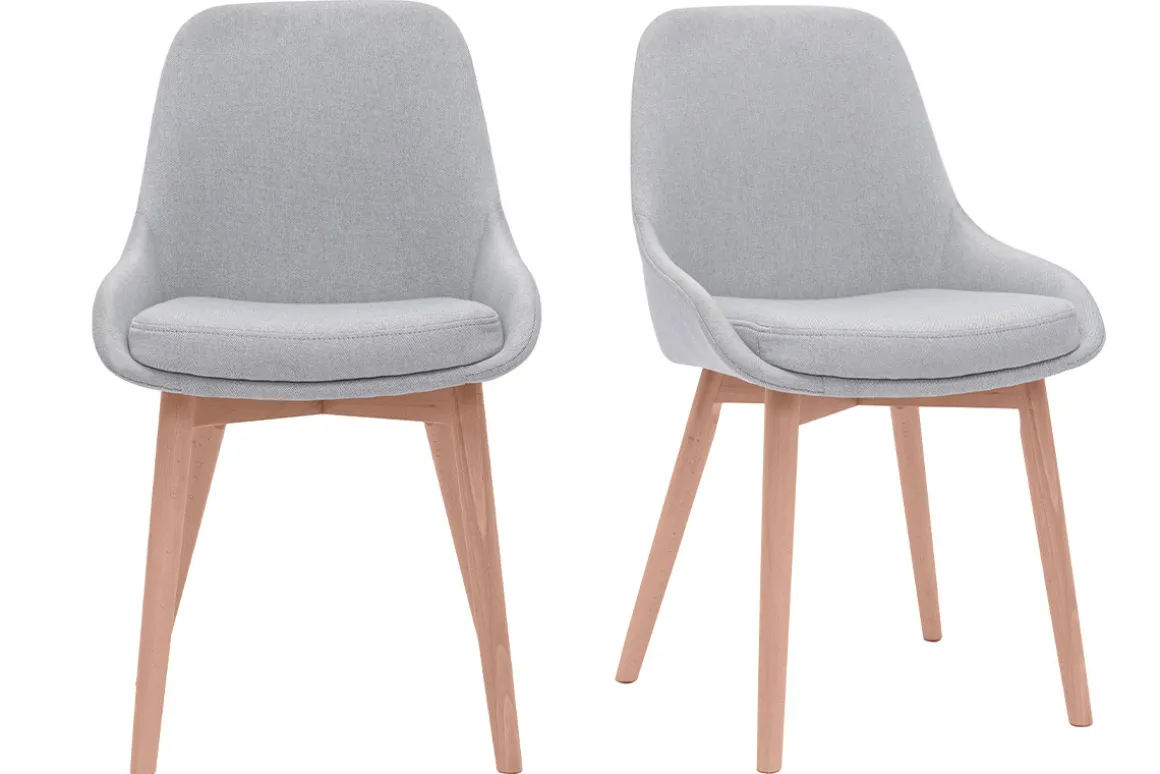 Entre design contemporain et authenticité, ces chaises en tissu gris et piètement bois clair conjuguent avec style lignes épurées et authenticité. Pile dans la tendance nordique, les silhouettes intemporelles de ces chaises scandinaves camperont leur élégante simplicité dans une cuisine ou une salle à manger en quête de douceur et de fonctionnalité.