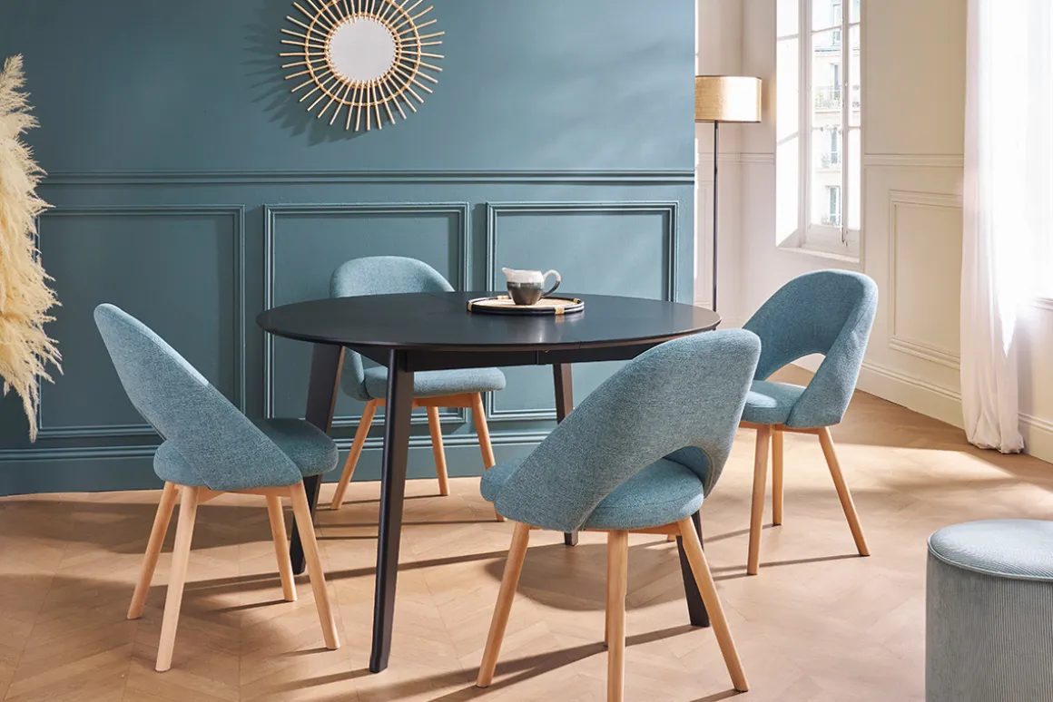 Ces chaises scandinaves se multiplient à l’envi autour de la table à manger.