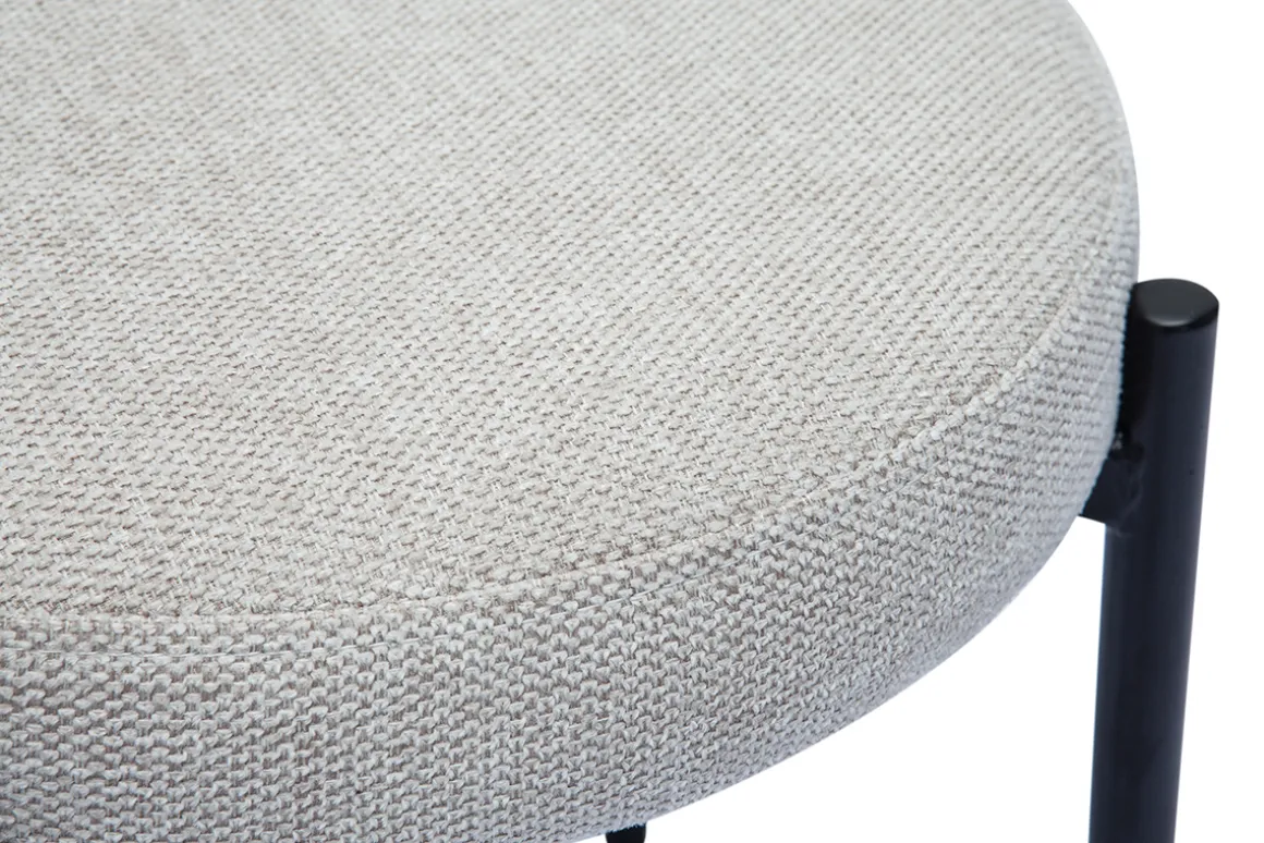 Fin et élancé, le piètement en métal noir est surmonté d’une galette d’assise en tissu effet velours texturé beige. Un ensemble qui assure stabilité et un excellent confort grâce à un garnissage mousse densité 25 kg/m³.
