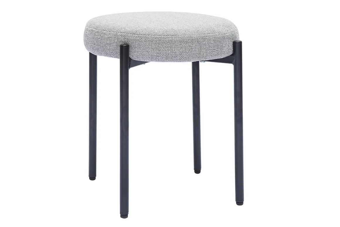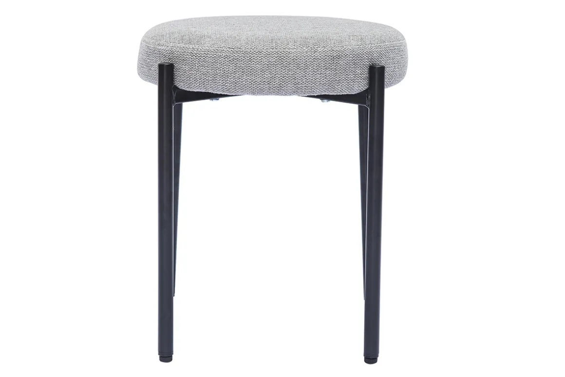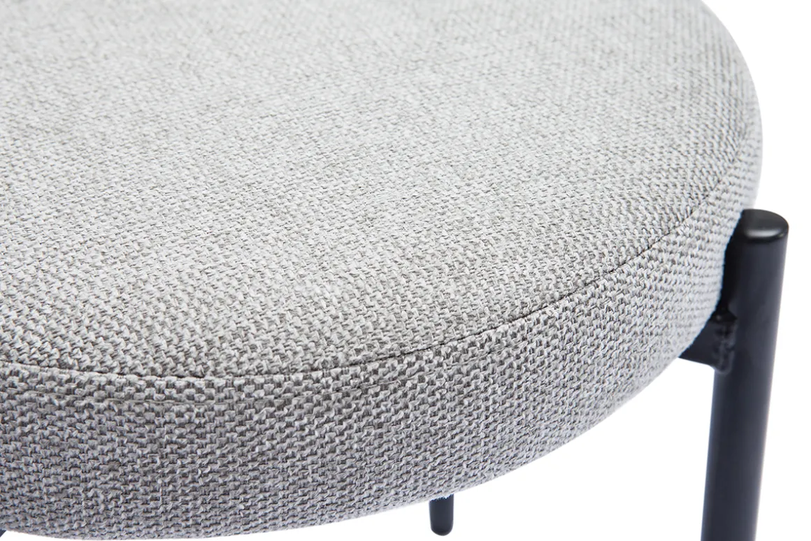 Fin et élancé, le piètement en métal noir est surmonté d’une galette d’assise en tissu effet velours texturé gris clair. Un ensemble qui assure stabilité et un excellent confort grâce à un garnissage mousse densité 25 kg/m³.