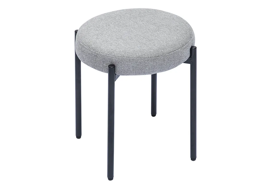 Tabouret empilable en métal et tissu gris livré prêt à monter. Montage simple, seul le piètement est à fixer.