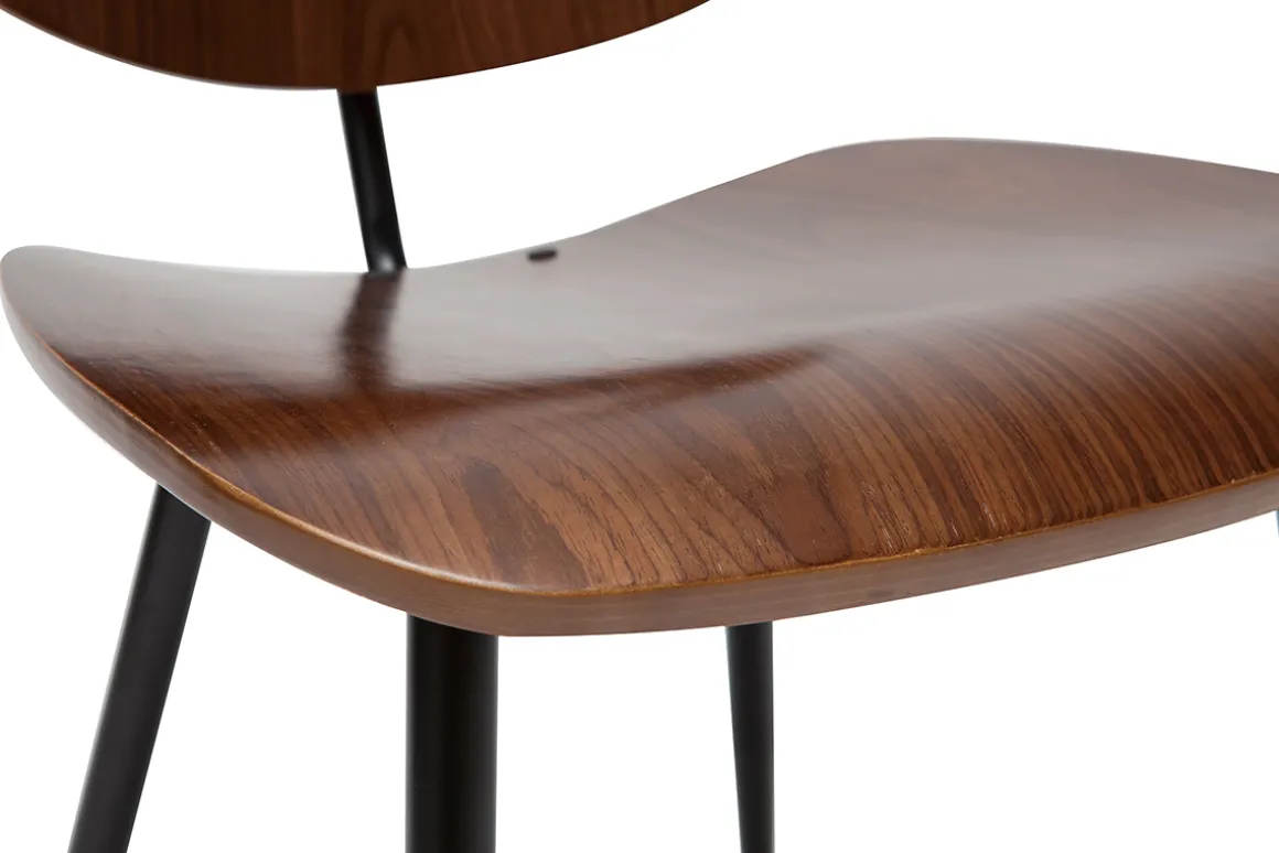 Indémodables et faites pour durer ces chaises de salle à manger se composent d’une structure en contreplaqué finition noyer et un piètement en métal noir. Pour profiter d’instants conviviaux confortablement installés, ces chaises en bois foncé sont équipées d’un large dossier et d’une assise incurvée.