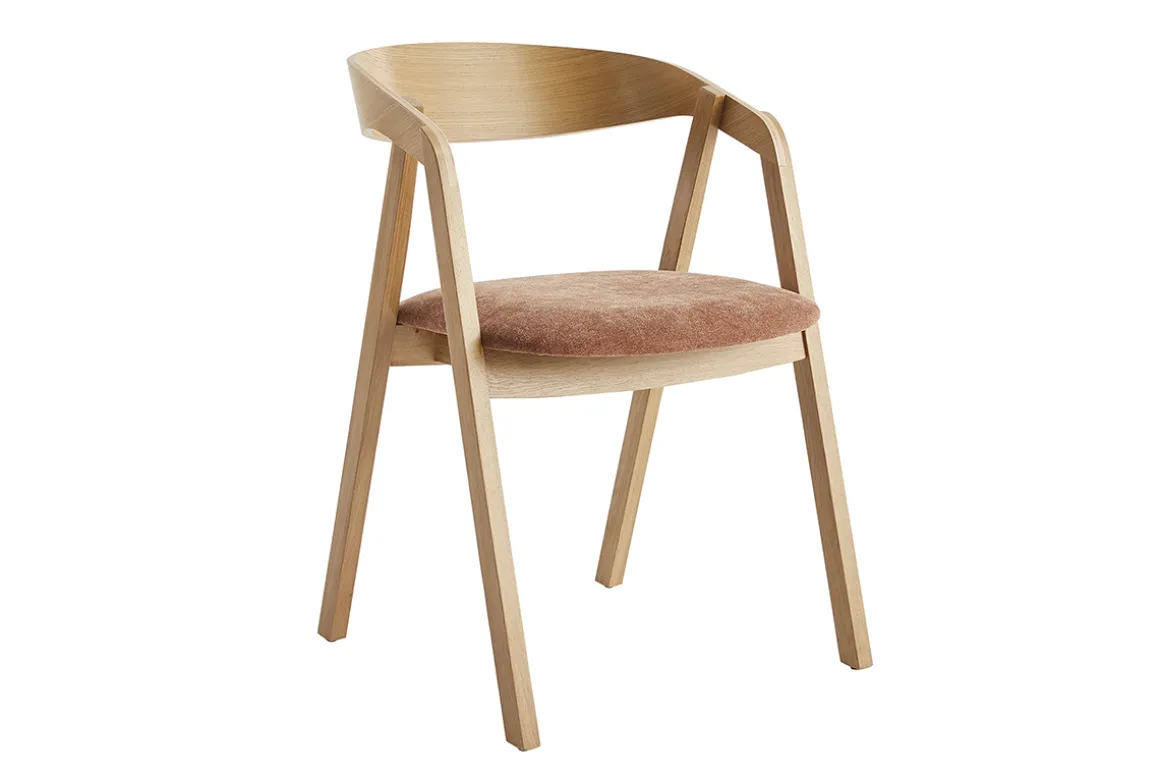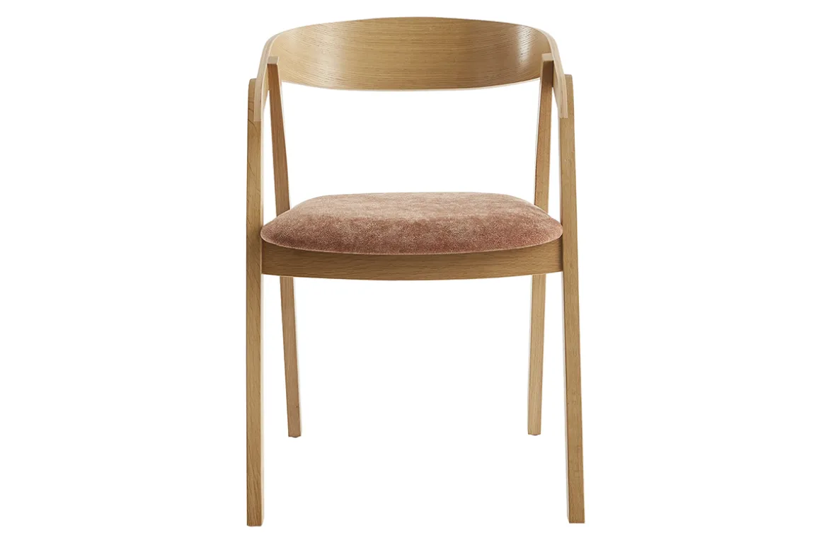 Élégant compromis entre la chaise et le fauteuil, ces chaises en bois avec accoudoirs se composent d’une structure aux volumes épurés en chêne massif (pieds) et contreplaqué chêne (dossier) qui offre une excellente prise en main. Aussi agréable à l’oeil qu’au toucher, l’assise rembourrée de mousse se pare d’un revêtement résistant (100% polyester). Idéal pour épouser le galbe du dos, le dossier courbé résolument enveloppant unis ses courbes aux lignes franches de quatre pieds. Travaillés avec originalité, ces derniers offrent une grande stabilité à l’ensemble.
