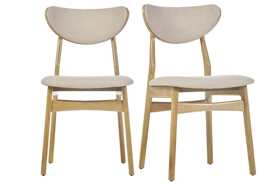 Avec les chaises scandinaves MAYA, courbes, bois clair et tissu bouclette ne forment plus qu’un !