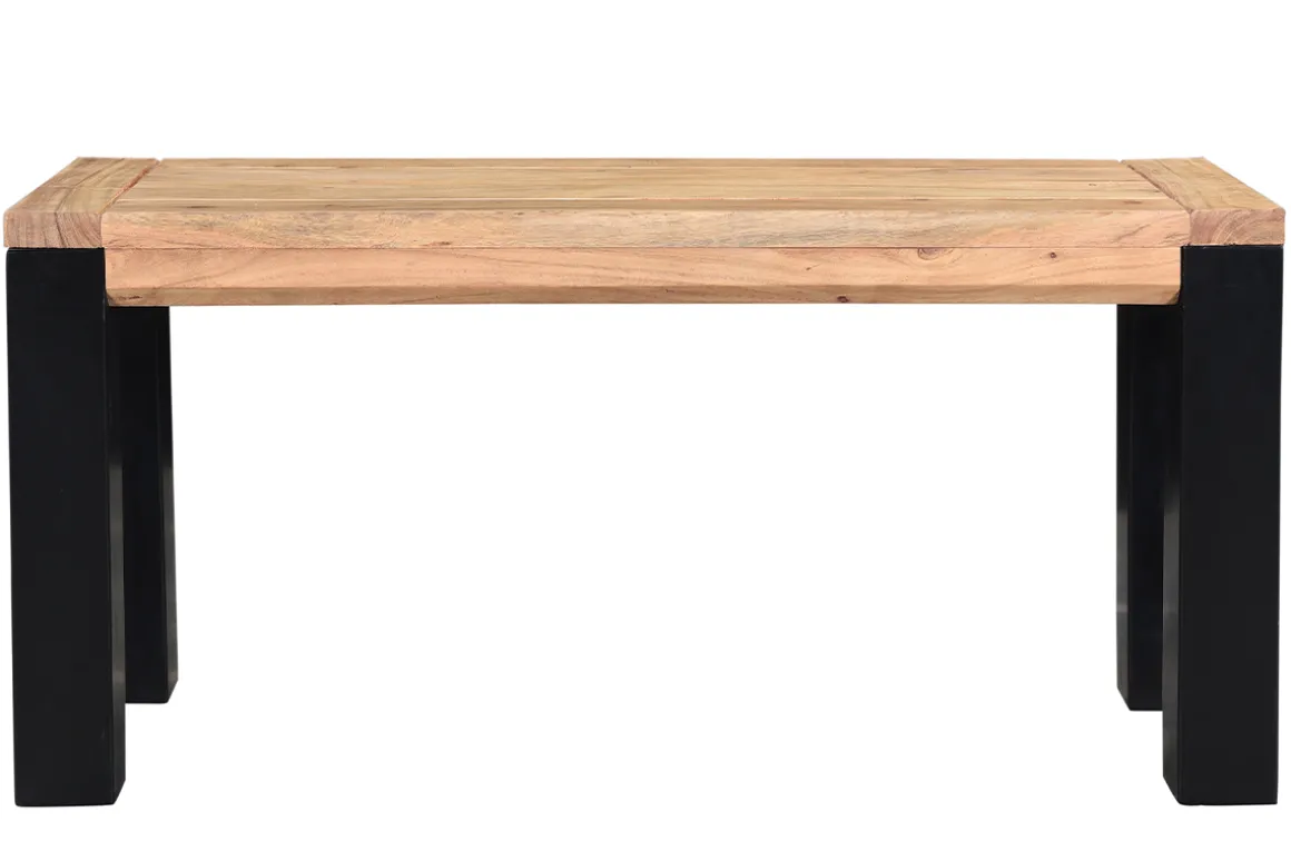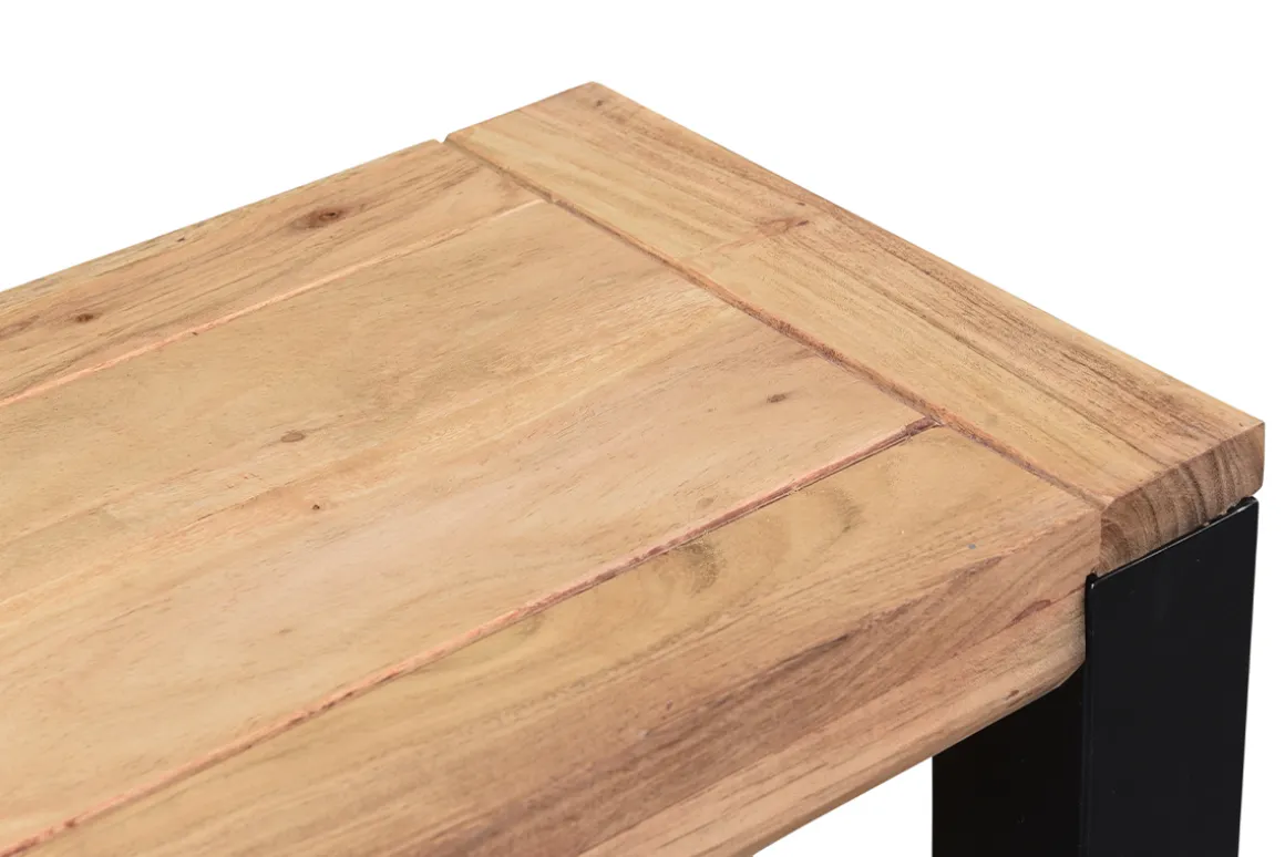 Bois massif et métal noir se font duo complice pour livrer une belle pièce au charme brut. Composé d’une assise en acacia massif aux reflets chauds, ce banc style industriel affiche avec allure des épais piétements en métal noir. Ils font incontestablement toute la prestance de ce banc conçu artisanalement !