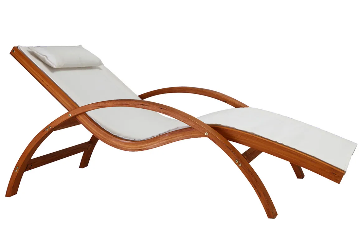 Bain de soleil en bois et toile blanche à monter soi-même.