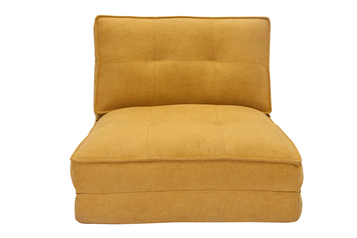 Ultra pratique, cette chauffeuse convertible 1 place ne délaisse pas pour autant son sens du style. Elle revêt un doux tissu effet velours texturé jaune moutarde et une belle finition capitonnée. Avec son look discret, SALLY est un fauteuil modulable qui se fondra autant dans un intérieur scandinave que contemporain. Pour l’accessoiriser, misez sur un joli coussin brodé et un plaid au toucher douillet !