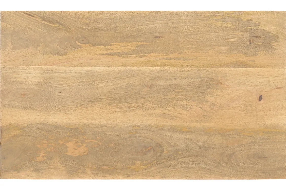 Des matériaux prêts à résister aux épreuves du temps ! Les pieds et les poignées en métal noir contrastent avec le fond en panneaux de fibres de bois et la structure en manguier massif huilé – une essence exotique dont les noeuds et nervures apparents jouent avec la luminosité d’un bois blond et lumineux –