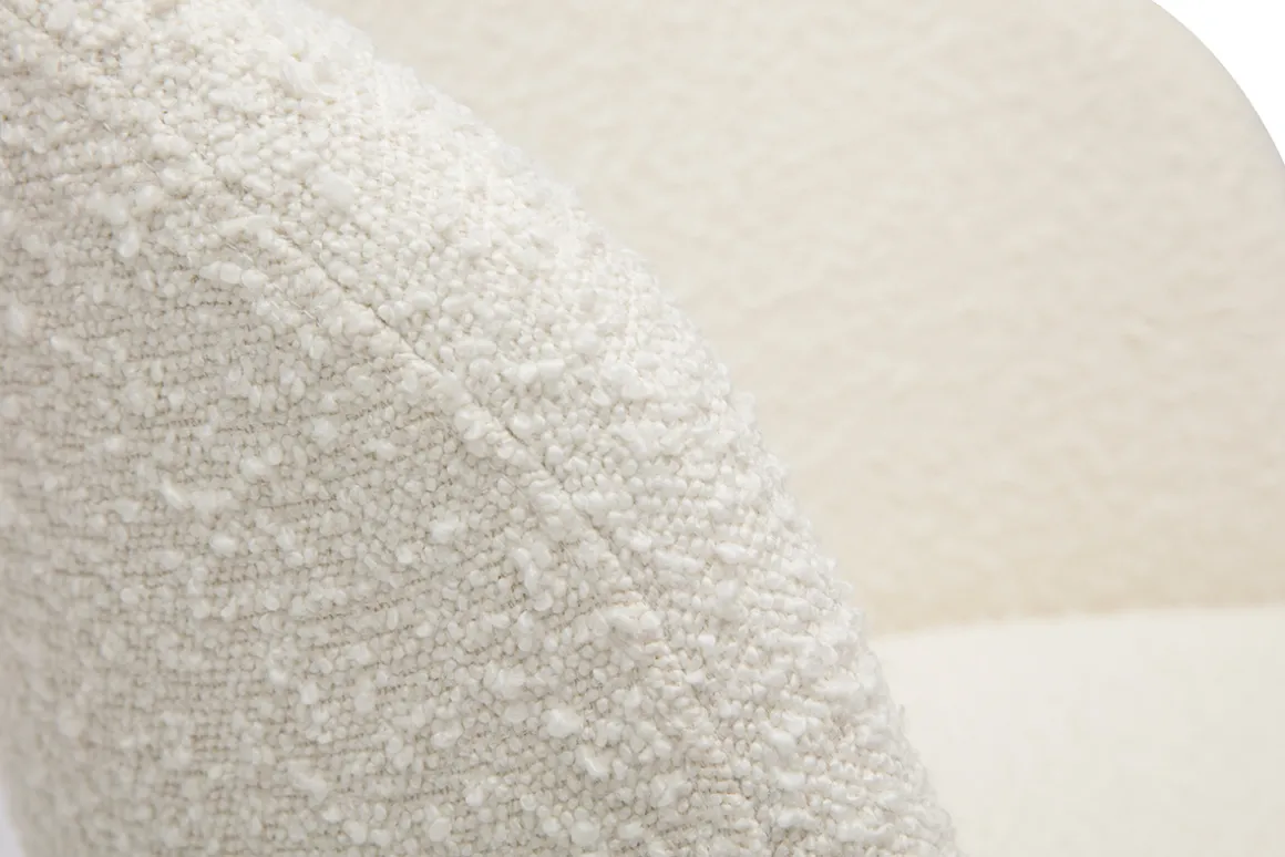 Avec son langage tout en rondeur et son rembourrage généreux (densité de la mousse 25 kg/m3), ce fauteuil de bureau design offre un excellent confort d’assise. Le dossier forme un véritable cocon, une enveloppe protectrice propice à la concentration et à la création. L’ensemble est recouvert d’un magnifique tissu effet laine bouclée (100% polyester) au toucher ultra doux.