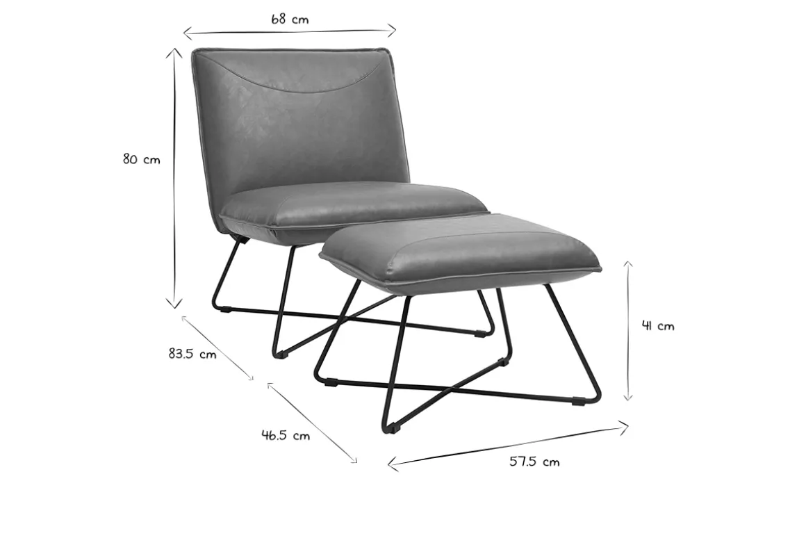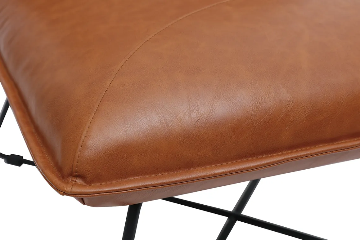 Revêtu de polyuréthane marron, le fauteuil et son repose pied PHILO apporteront chaleur et personnalité à votre intérieur. Son piètement métallique fin en étoile lui assure une bonne stabilité et souligne les lignes fines de cette pièce de mobilier.