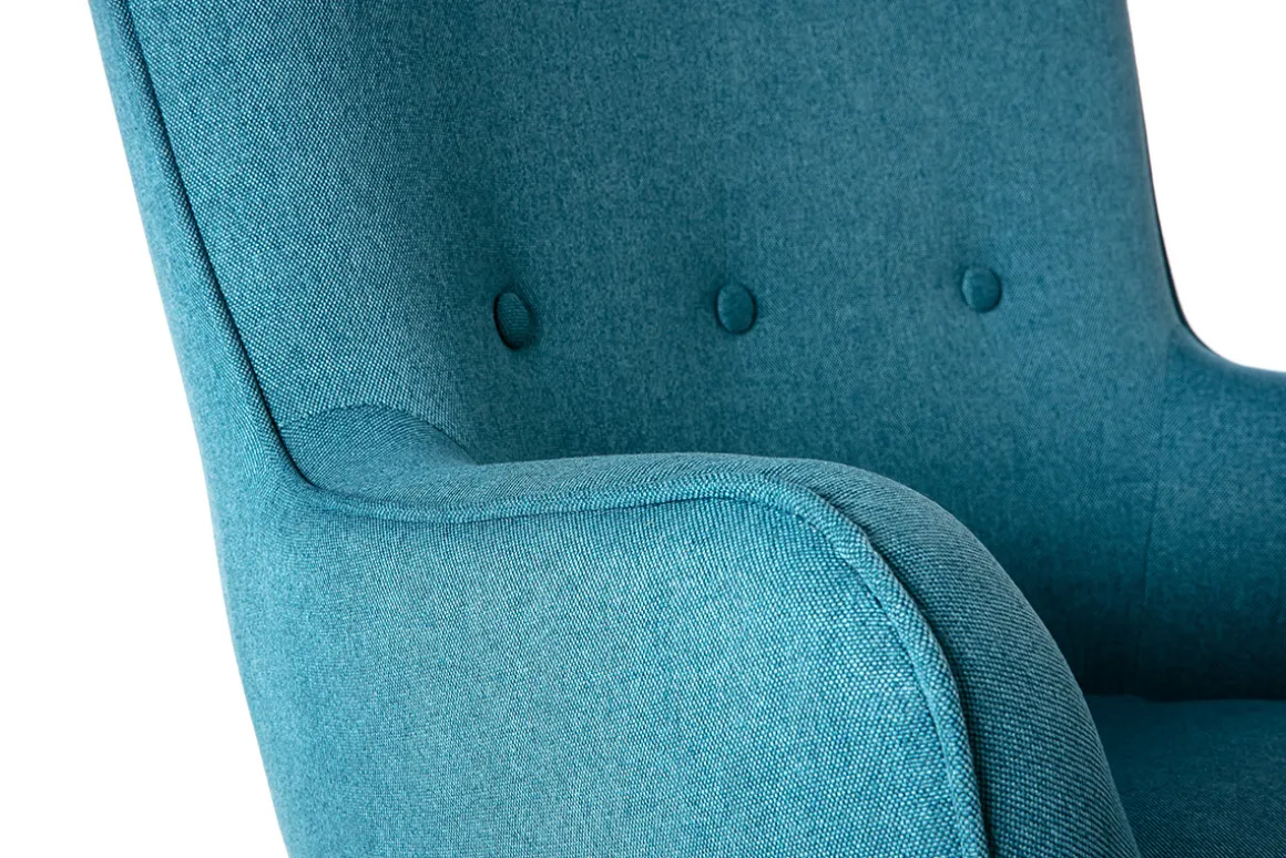 Avec son haut dossier, le fauteuil design scandinave et son repose-pieds bleu canard et bois clair BRISTOL sont des véritables atouts confort. Son haut dossier permet d’être tout à fait enveloppé par le fauteuil.