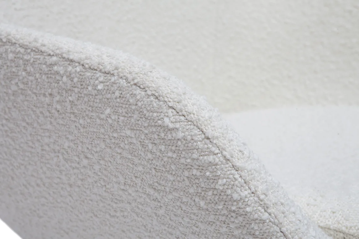Habillé d’un superbe tissu effet laine bouclée écru, MAYNE participe pleinement à l’écriture d’une ambiance ultra chaleureuse. Douce et réconfortant par essence, ce revêtement molletoneux épouse joliment les courbes de cette assise au design unique.