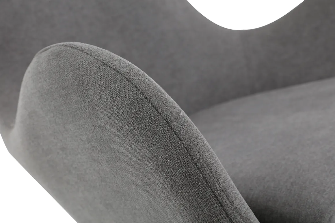 C’est sa forme audacieuse qui interpelle en premier. Ses accoudoirs incurvés, son dossier tout en courbe, son piètement en étoile, chaque élément a été travaillé pour faire de l’ensemble une véritable pièce design. Ses rondeurs et son coussin d’assise nous invitent ensuite à la détente. En s’asseyant, on découvre un fauteuil confortable… et pivotant ! On apprécie de pouvoir se tourner vers ses invités, puis de pouvoir s’orienter vers sa télévision afin de profiter ensemble d’une soirée film.