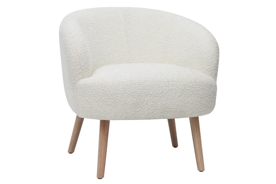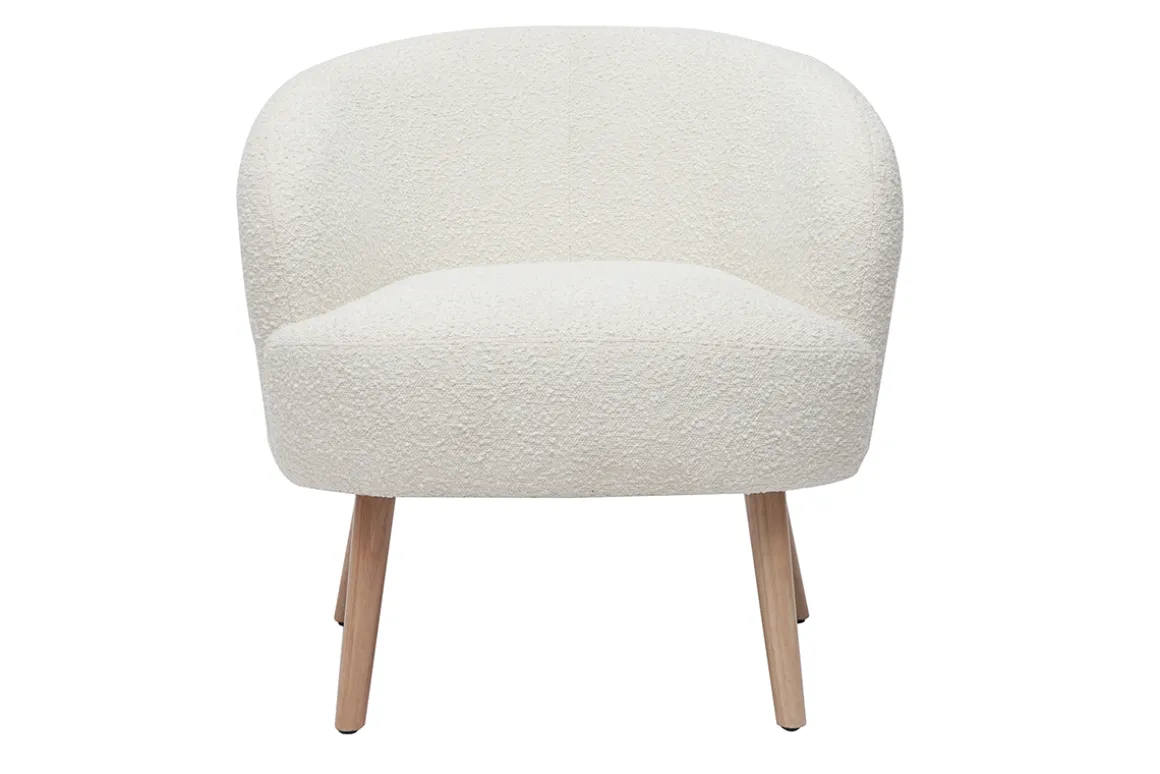 Le fauteuil scandinave MAGGIE est l’atout charme des salons cocooning. Prenez place au coeur de ses courbes enveloppantes et appréciez l’incroyable douceur de son revêtement effet laine bouclée écru…